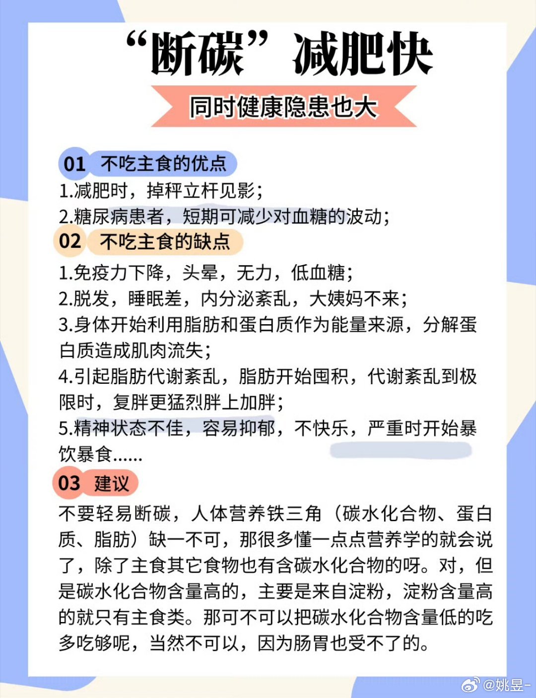 女子断碳水2月确诊糖尿病前期这个故事告诉我们 还是要科学减重,适量运动千万不要一点碳水不吃啊……