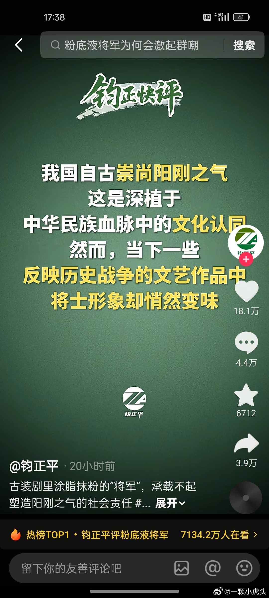 抖上官方评粉底液将军热一挂一天了,人民日报也发了!
