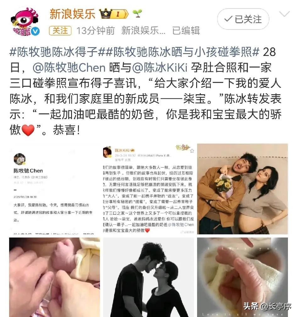 内娱又来新孩子了!陈牧驰陈冰官宣结婚生子。