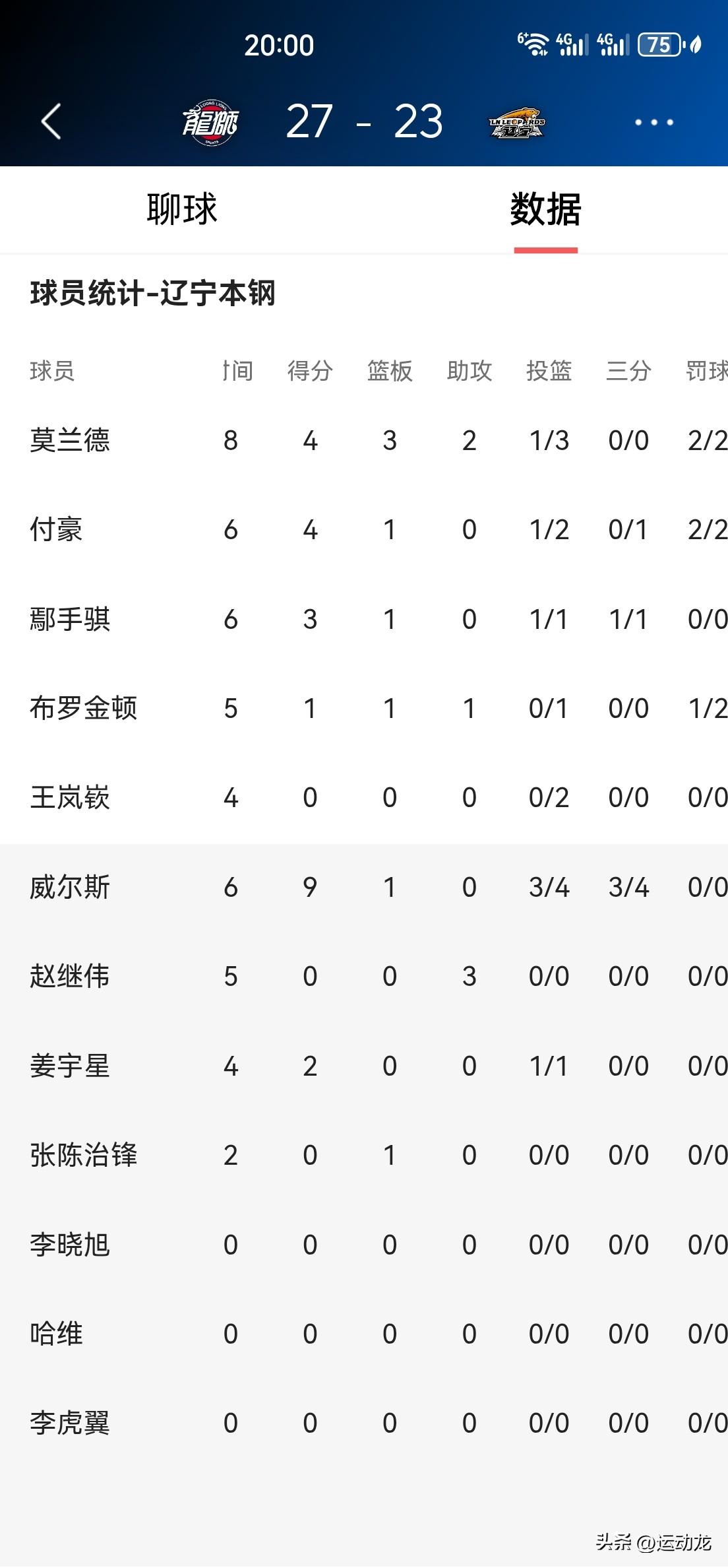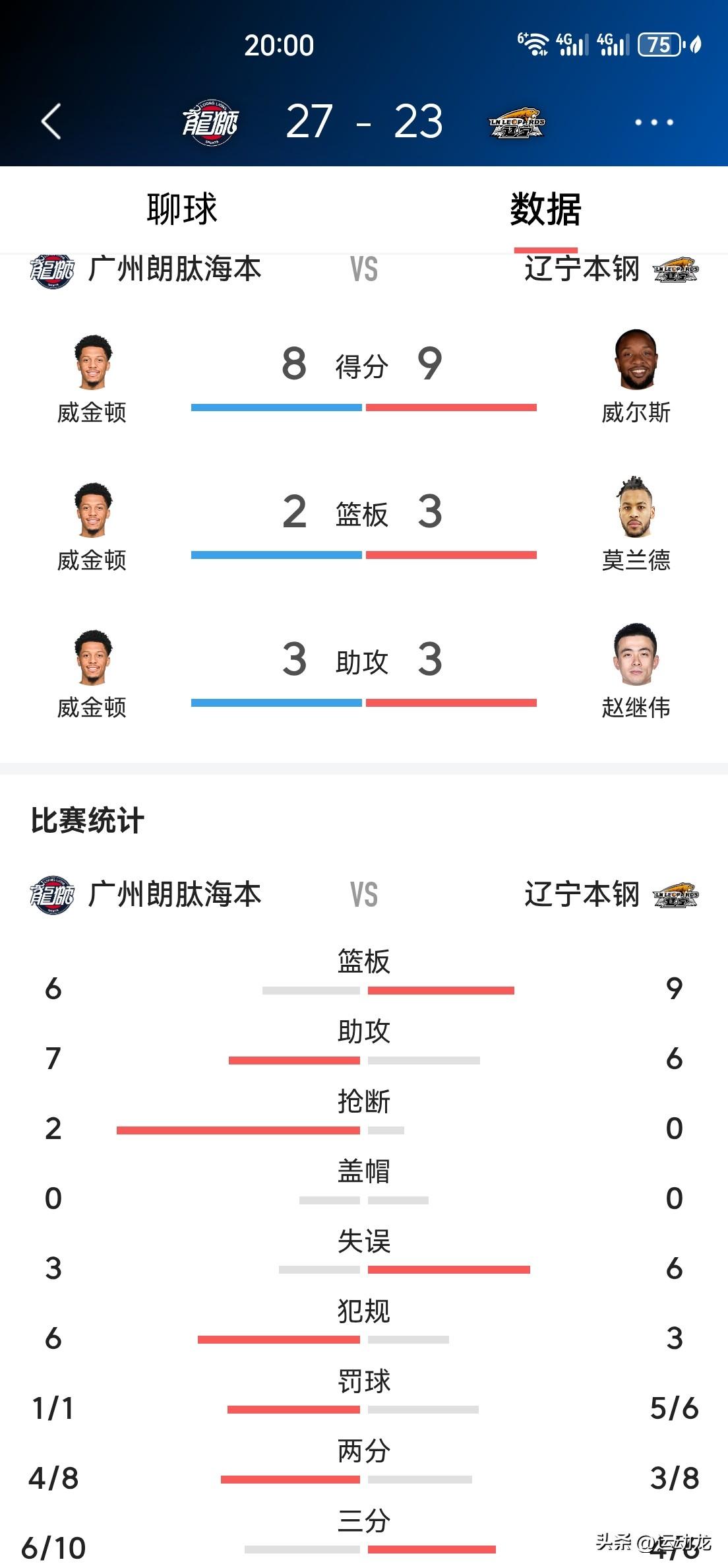 炸裂!双方三分球命中率60%对67%! 广州广州主场对阵辽宁,首节广州27:23领先辽宁,双方打出超高的三分球命中率,广州队10投6,中命中率60%,辽宁队6投4中,命中率高达67%。