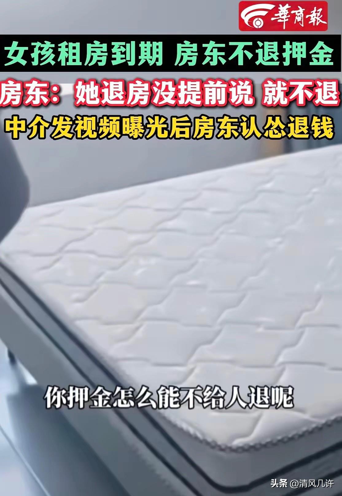 江苏,女孩房租到期,找房东退1200元押金遭到拒绝,急得不行找到中介小哥帮忙,小哥赶到房子一看,女孩把房间打扫的很干净,于是打电话给房东质问为什么不退押金,房东表示没有提前半个月说,肯定是退不了,不服就去报警,女孩急得眼眶通红,自己下午还要赶高铁,没想到会出这种事,万万没想到,小哥竟然自掏腰包先把押金给了女孩让其赶车,不要耽误行程,自己去找房东讨说法!网友:这种小哥百年一遇! 女孩是刚毕业半年的大学生,来江苏找工作,租了这套小单间,合同签了半年,房租和押金都是她省吃俭用攒下的生活费。 眼看合同到期,她收拾好行李,把房间里里外外打扫了一遍,连厨房的油污都用钢丝球擦得发亮,地板拖了三遍,就想着能顺顺利利拿回押金,回老家陪父母。 可当她联系房东时,对方却一口咬定“没提前半个月说退房,押金一分不退”。她翻遍了合同,里面根本没写提前告知的条款,反复跟房东解释“合同到期自动终止,我房租都交清了,房间也没损坏”,可房东态度强硬,直接说“不服你就报警,找我没用”。 女孩急得直掉眼泪,下午的高铁票已经买好,要是耽误了,不仅要花改签费,老家还有急事等着她处理。她抱着最后一丝希望,联系了当初带她看房的中介小哥。小哥听说后,立刻放下手里的活,赶了过来。 一进房间,小哥就看到收拾得干干净净的屋子,连墙角的灰尘都没有,更别说家具损坏了。 他拿出手机,拨通了房东的电话,语气严肃地质问:“合同到期了,租客把房子打扫得这么干净,你凭什么扣押金?”房东在电话里依旧蛮横,重复着“没提前说就不退”的理由,还让小哥别多管闲事。 挂了电话,小哥看着女孩通红的眼眶,没再多说,直接打开手机转账界面,把1200元转给了女孩。 “你先赶高铁,别耽误事,这钱我先垫着,我来跟房东要说法。”女孩推辞着,说不能让小哥平白无故受损失,小哥却摆摆手,“我做中介这么久,最见不得租客被欺负,你放心走,这事我管定了。” 女孩攥着手机里的转账记录,哭着给小哥鞠了一躬,拖着行李箱匆匆赶往高铁站。 小哥留在房子里,拍了房间的干净状态,录下和房东的通话录音,剪辑成视频发到了网上,配文“合同到期,租客打扫干净房间,房东却以没提前告知为由扣1200押金,这合理吗?” 视频很快在网上发酵,网友们纷纷指责房东的无理行为,还有人@了当地的住建部门和消协。房东看到舆论压力越来越大,终于坐不住了,主动联系小哥,语气软了下来,说愿意退还押金,还解释自己之前是一时冲动。 小哥没跟他多废话,只说“把钱转过来,我再还给女孩”。当天下午,房东就把1200元转给了小哥。小哥立刻把钱转回给女孩,女孩收到后,发来长长的感谢信息,说要不是小哥,自己真的不知道该怎么办,以后来江苏还要找小哥租房。 这件事被更多人看到后,不少租客都在评论区分享自己被房东扣押金的经历,大家感慨租房市场的乱象,也为中介小哥的仗义点赞。 有人说,小哥的举动不仅帮了一个女孩,更让更多人看到了租客的权益不该被随意侵犯;也有人说,希望更多房东能守住底线,别用无理理由克扣租客的血汗钱。 其实租房押金的本质是保障房屋设施,而不是房东用来牟利的工具。合同到期,租客结清房租、打扫好房间,房东就该无条件退还押金。像这位房东一样,用“没提前告知”这种莫须有的理由扣押金,不仅违背了契约精神,更寒了租客的心。 而中介小哥的仗义,更像一束光,照进了租房市场的灰色地带。他没有因为事小就推诿,也没有因为麻烦就退缩,用自己的行动告诉大家,善良和正义从来都不会缺席。 各位读者你们怎么看?欢迎在评论区讨论。