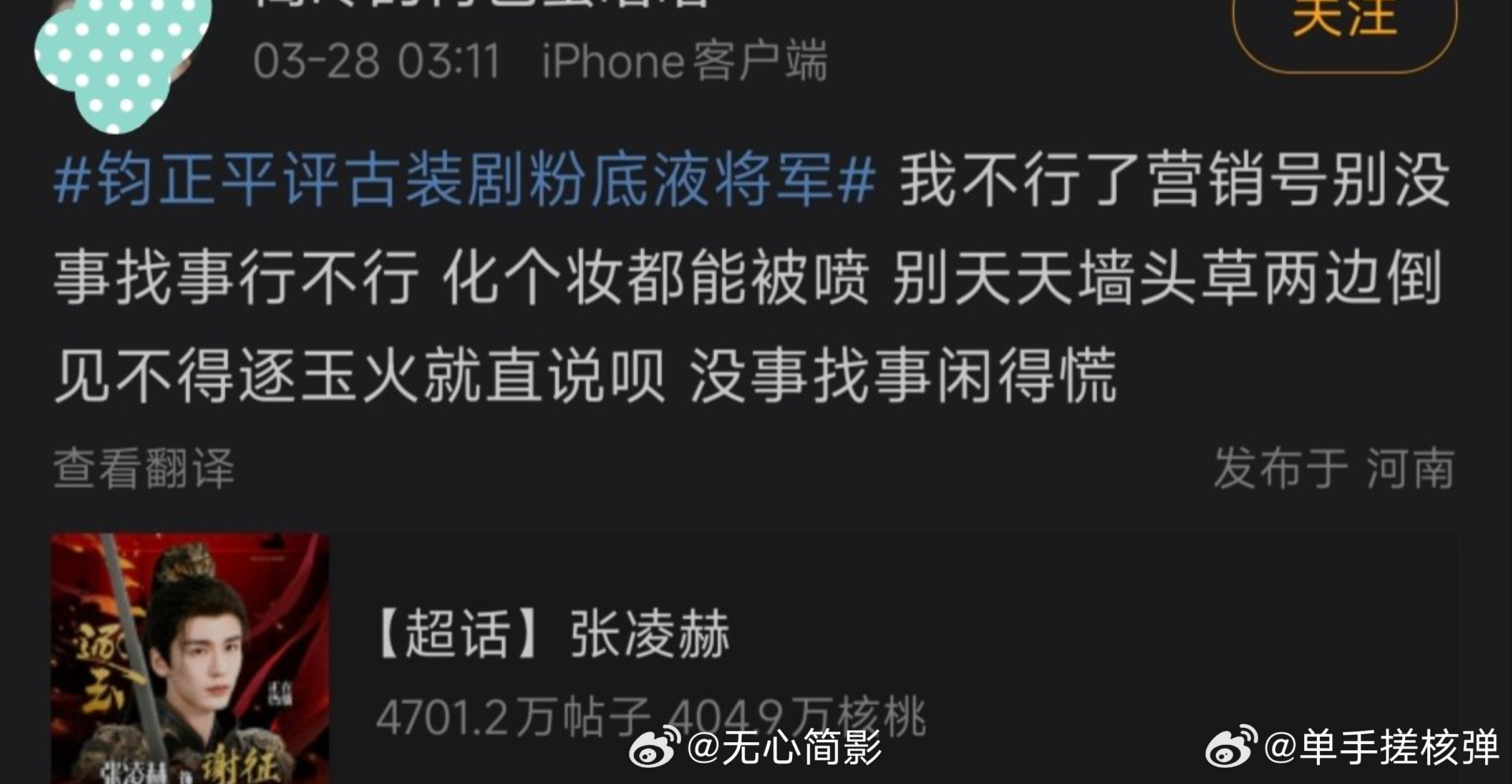 我觉得张凌赫的将军被戏称“粉底液将军”,不是因为粉底液,是因为用那俩翎子!甚至是