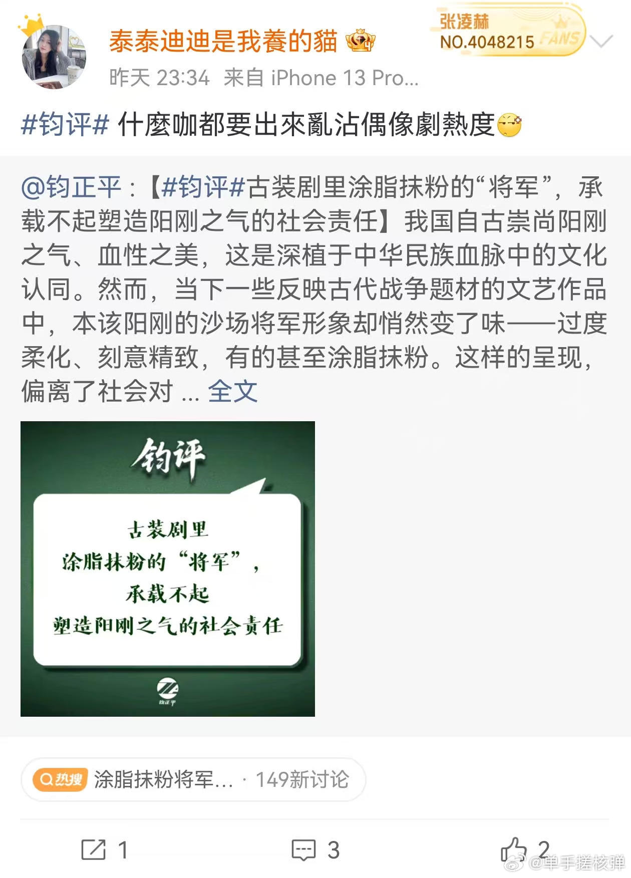 最近短视频的最火梗,是张凌赫扮演的将军被群嘲涂脂抹粉、“粉底液将军”。连带着把1