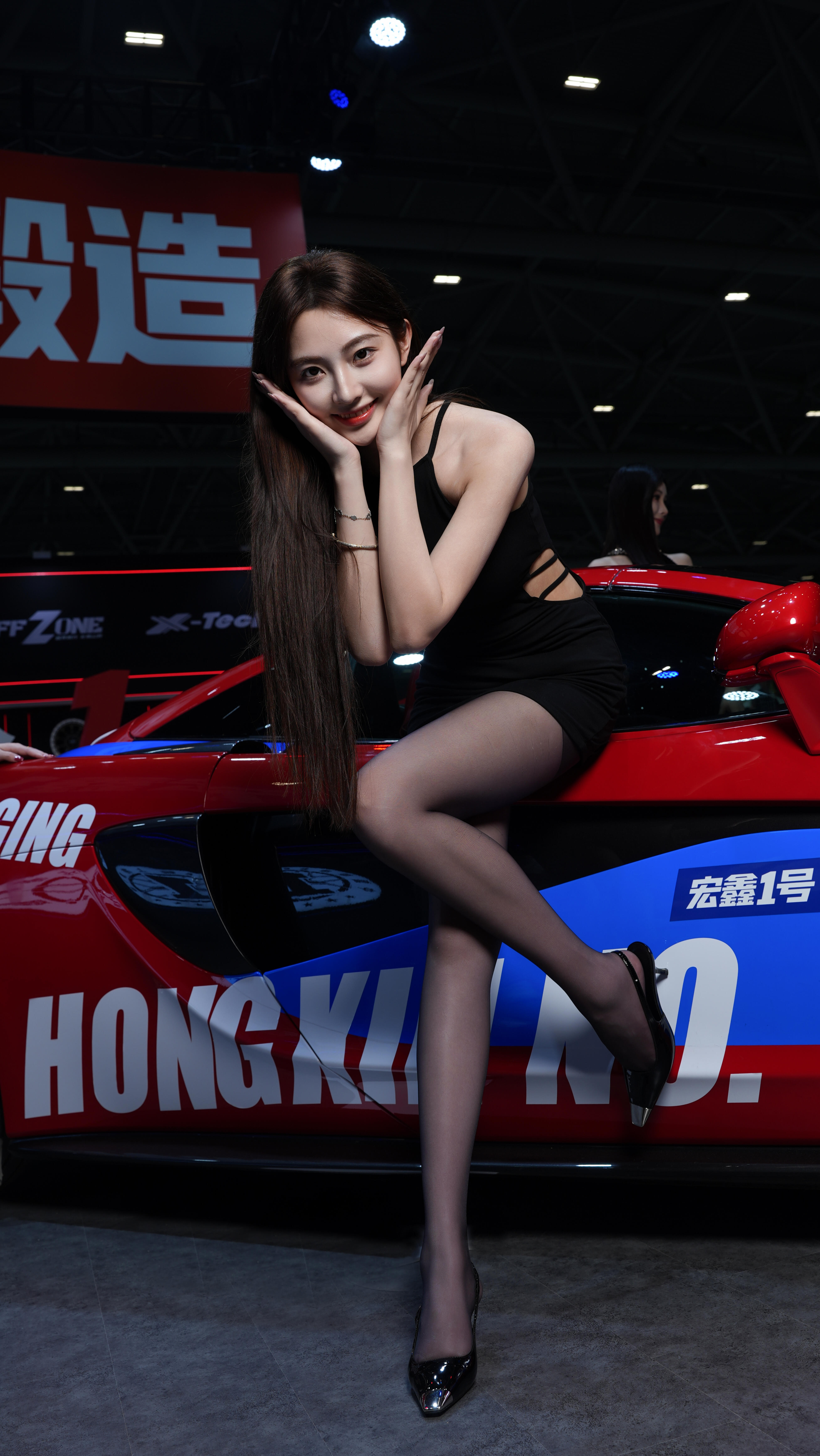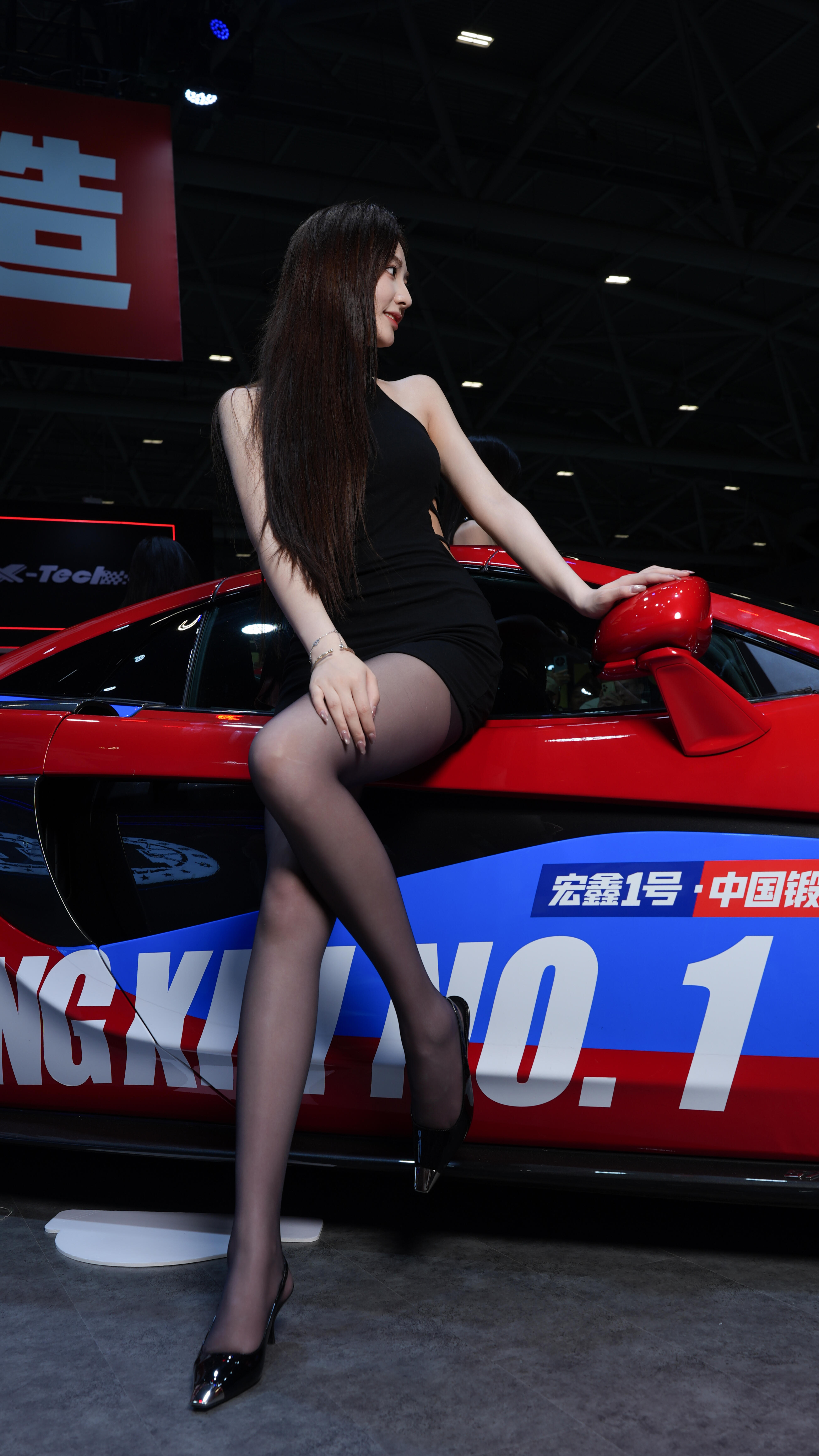 车展热裤车模小姐姐