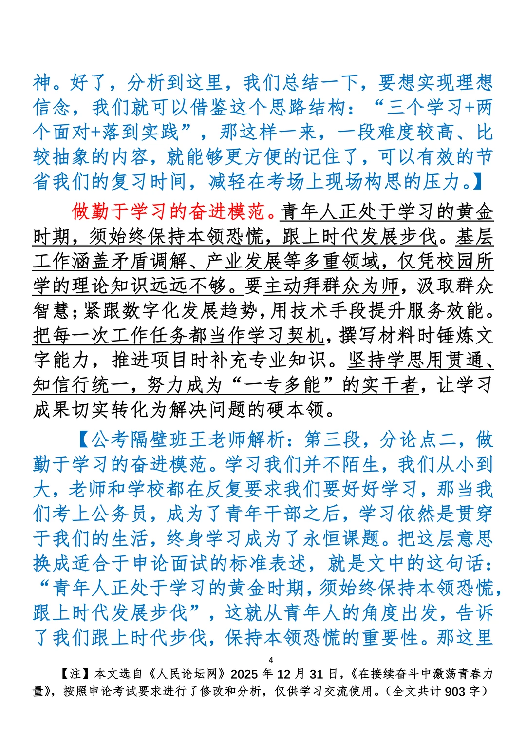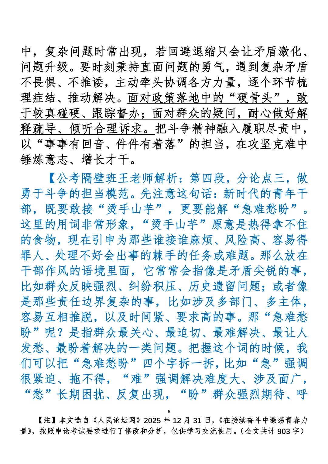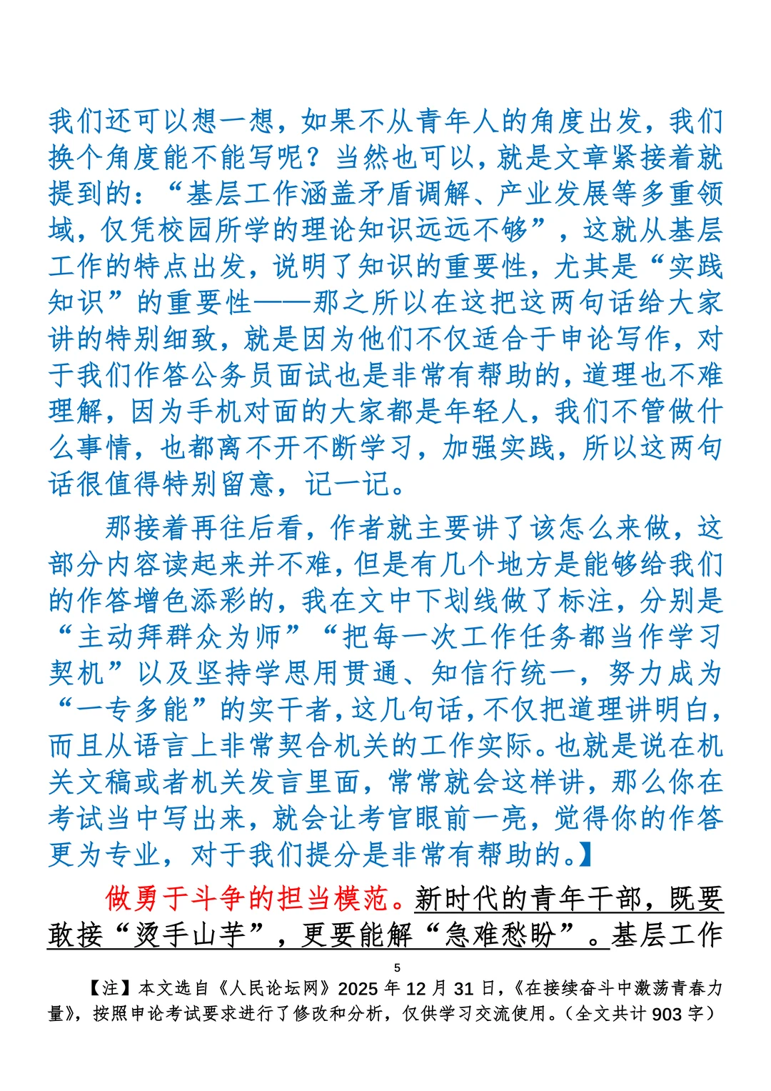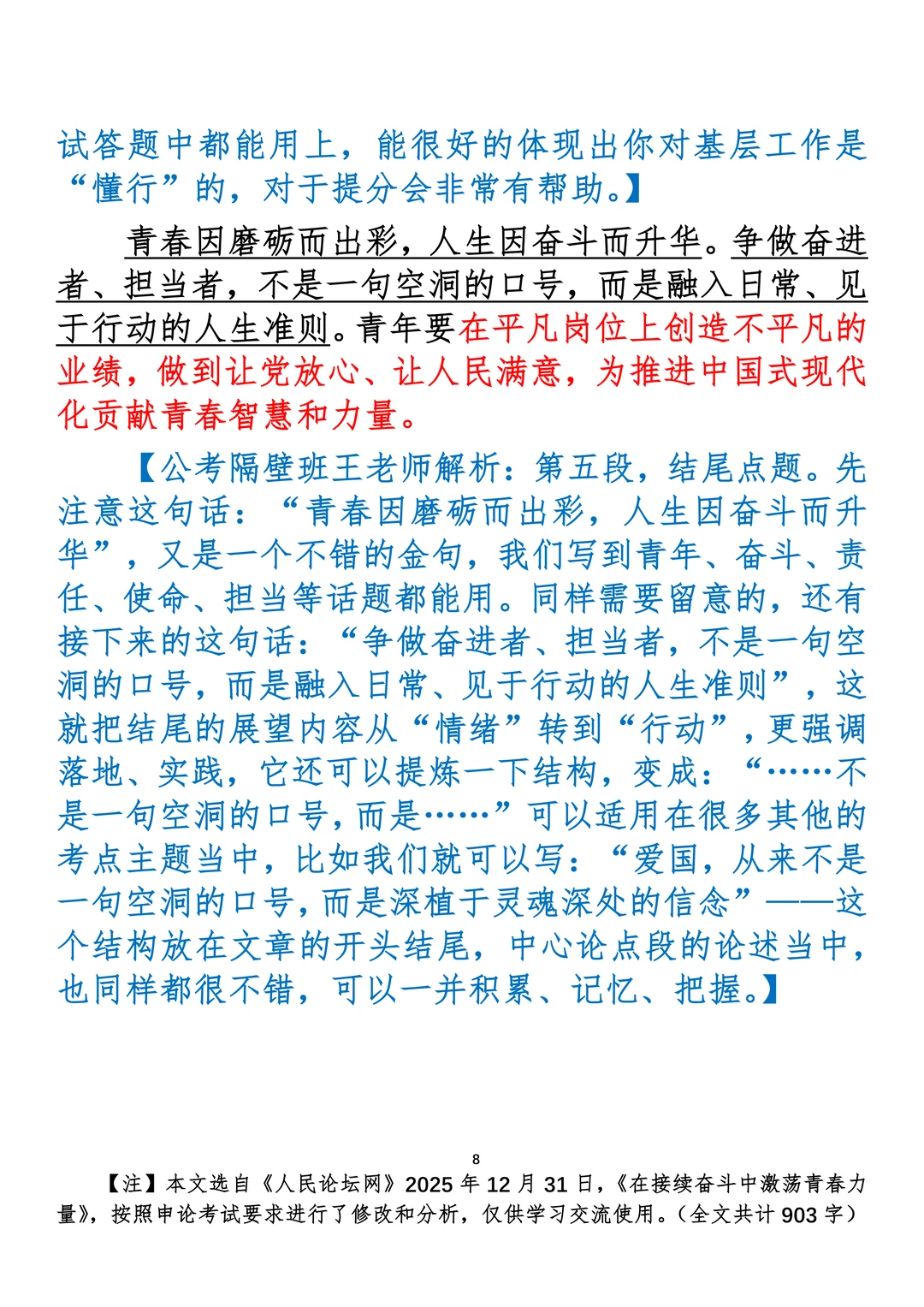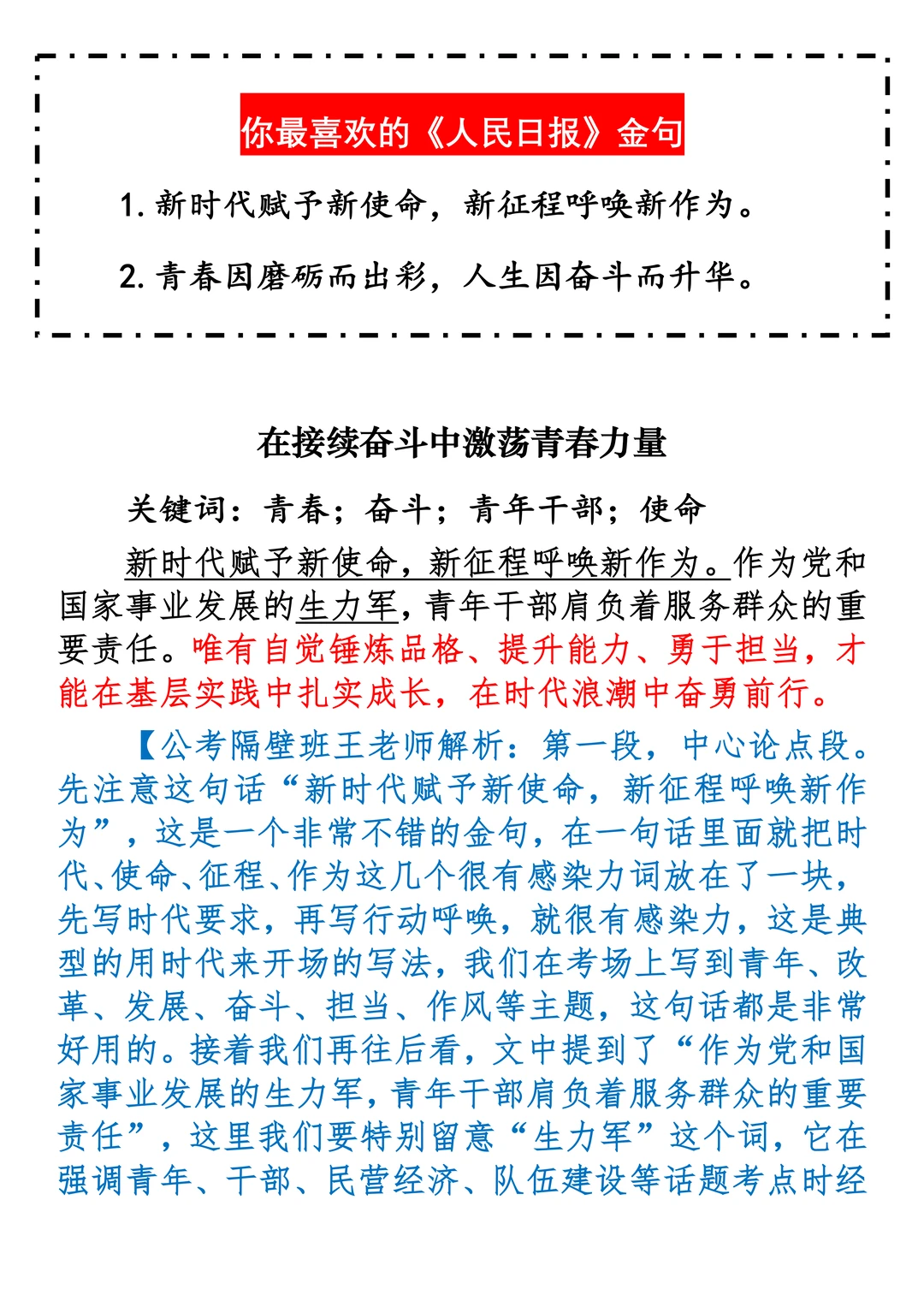 如何抄写:每日抄写文章发在“公考隔壁班王老师”账号,红色字是重点句和结构句,黑色字是正文,蓝色字是解析,大家抄写时不必抄蓝色字。建议先通读全文,做到心中有数再开始抄写,效果会更好。 关于文章:抄写文章来源于人民日报,但每篇文章我都根据申论考试要求进行了修改:一是重写或修改开头、结尾;二是统一段首句句式结构;三是调整段落字数,使文章结构更均衡;四是简化复杂长难句,使之更具可模仿性。每篇文章无论修改多少,都是基于申论考试要求,毫无对人民日报文章品评之意。(此处致敬人民日报)