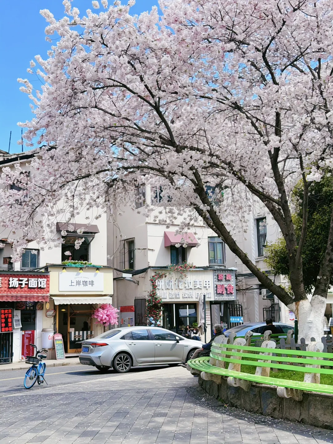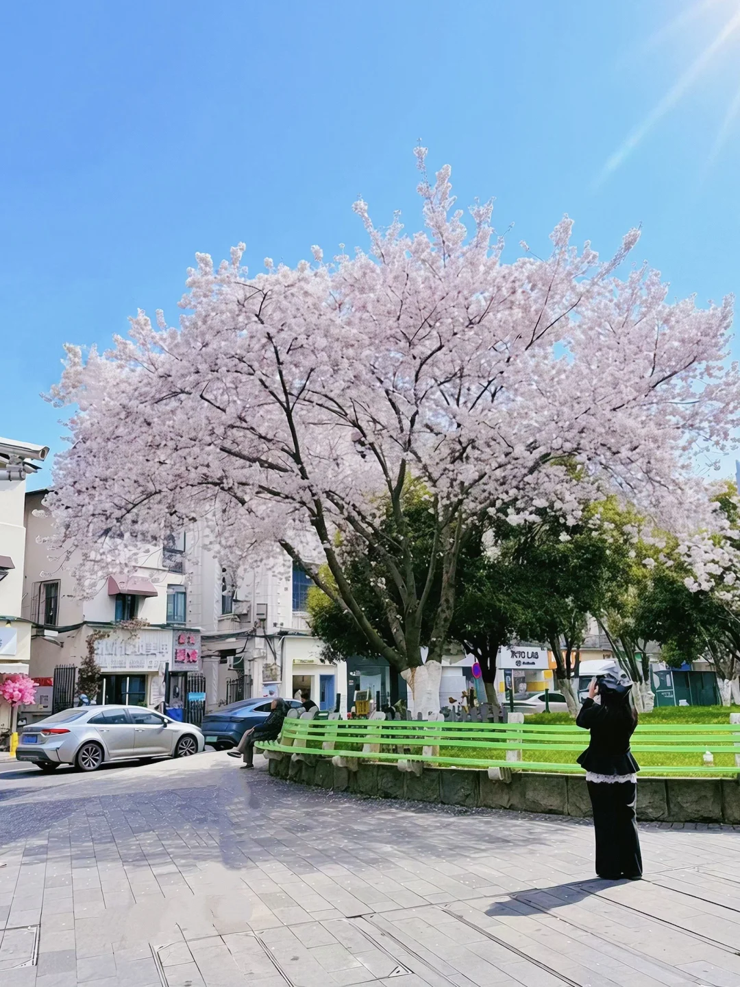 在武汉街头被我发现了这颗梦中情树 真的太像日本了吧! 这颗樱花树🌸全开爆了 一阵风吹进来还有花瓣飘落 真的太美啦! 关键是没人呀 真的好适合拍日系樱花写真 📍中山大道跟扬子街交叉路口(江汉路附近)