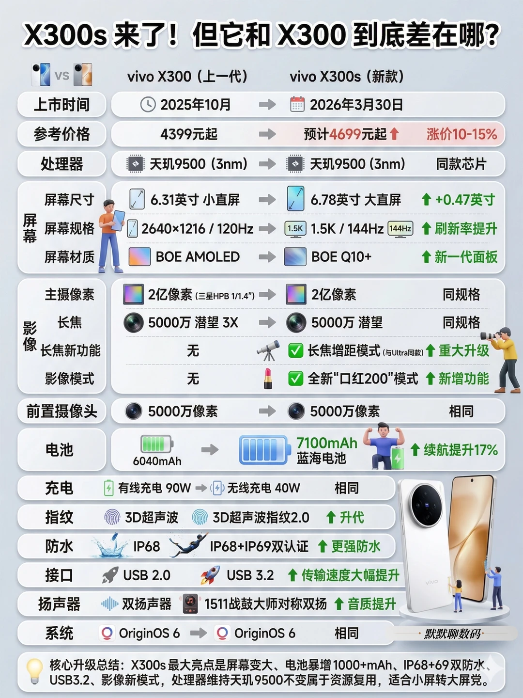 🔥 X300 Ultra 和 X300s 要来了,先别急着入手! 距离发布还有3天,今天给你们把两台新机跟上一代的升级点逐一扒清楚—— 📸 X300 Ultra vs X200 Ultra:影像继续登顶,但屏幕做出取舍 ⚡ X300s vs X300:大屏续航党终于等来了,芯片也完成自我传承 🛒 第三张图是重点!告诉你到底谁该升,谁该等,谁直接选上一代💰 📍参数全部来自官方预热 + 行业爆料汇总,建议⭐对比再决定!