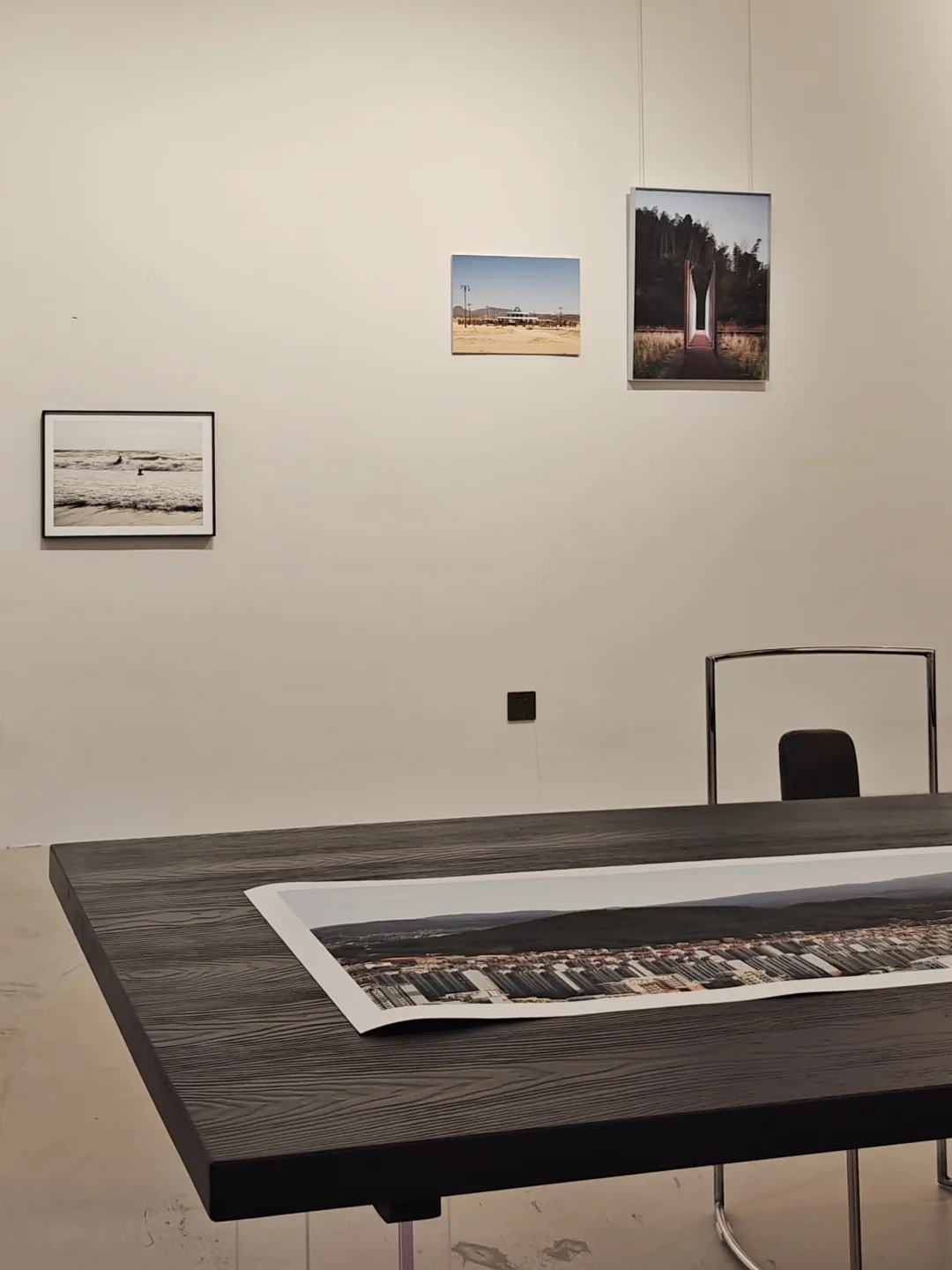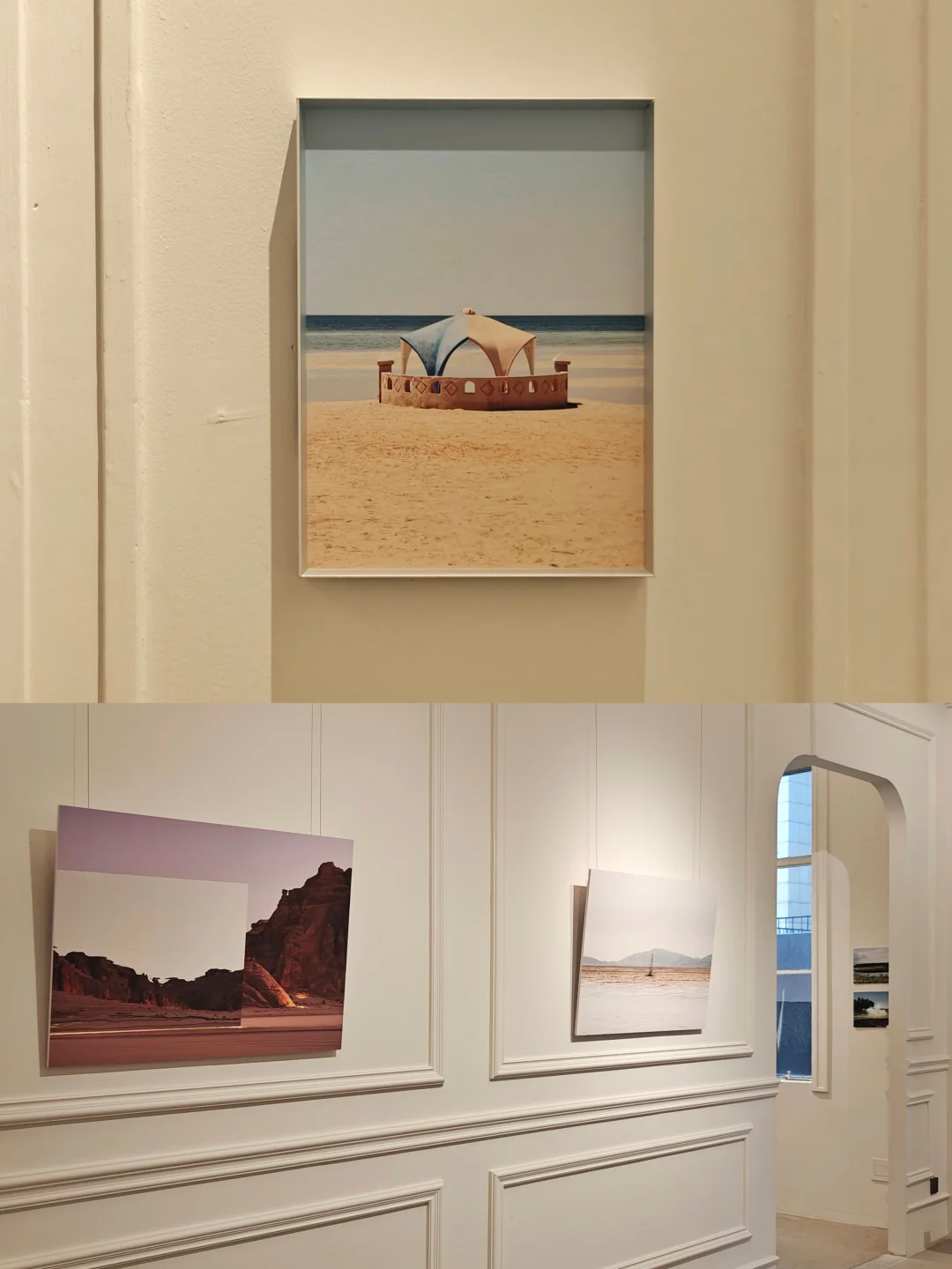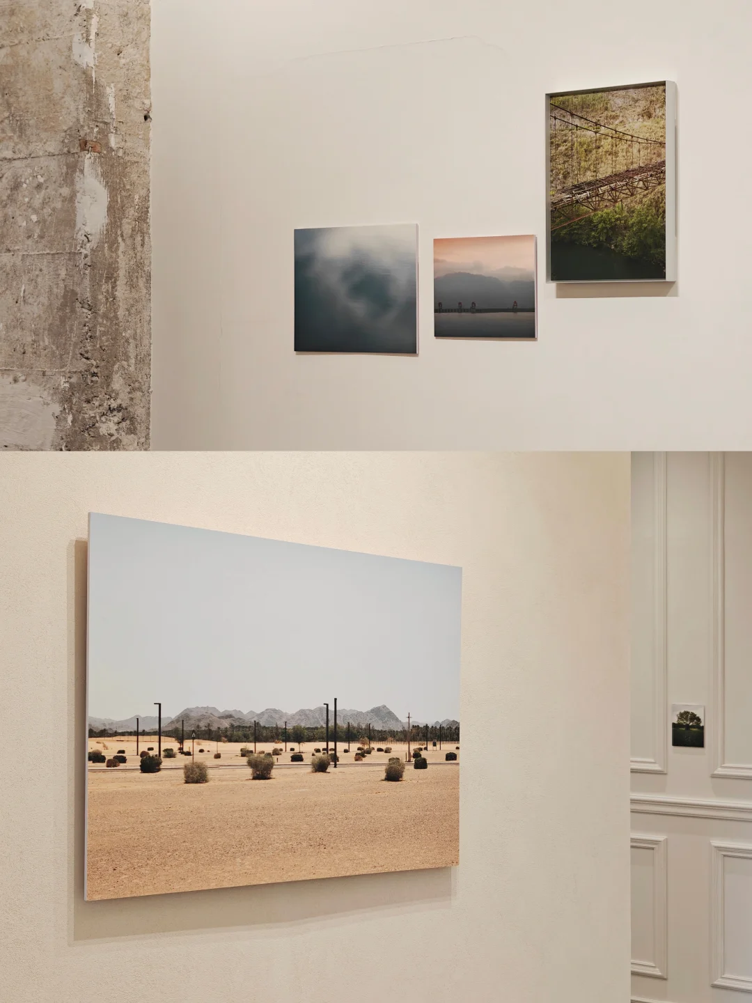 📷特意设计过的展陈空间和摄影作品形成对话,分割视角和留白设计,强化在风景外观察的距离感。