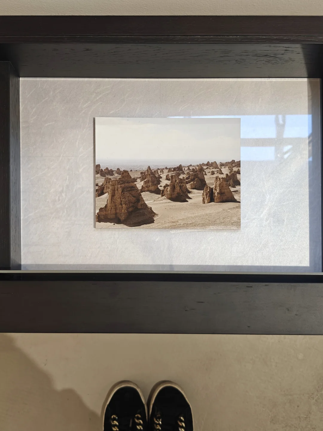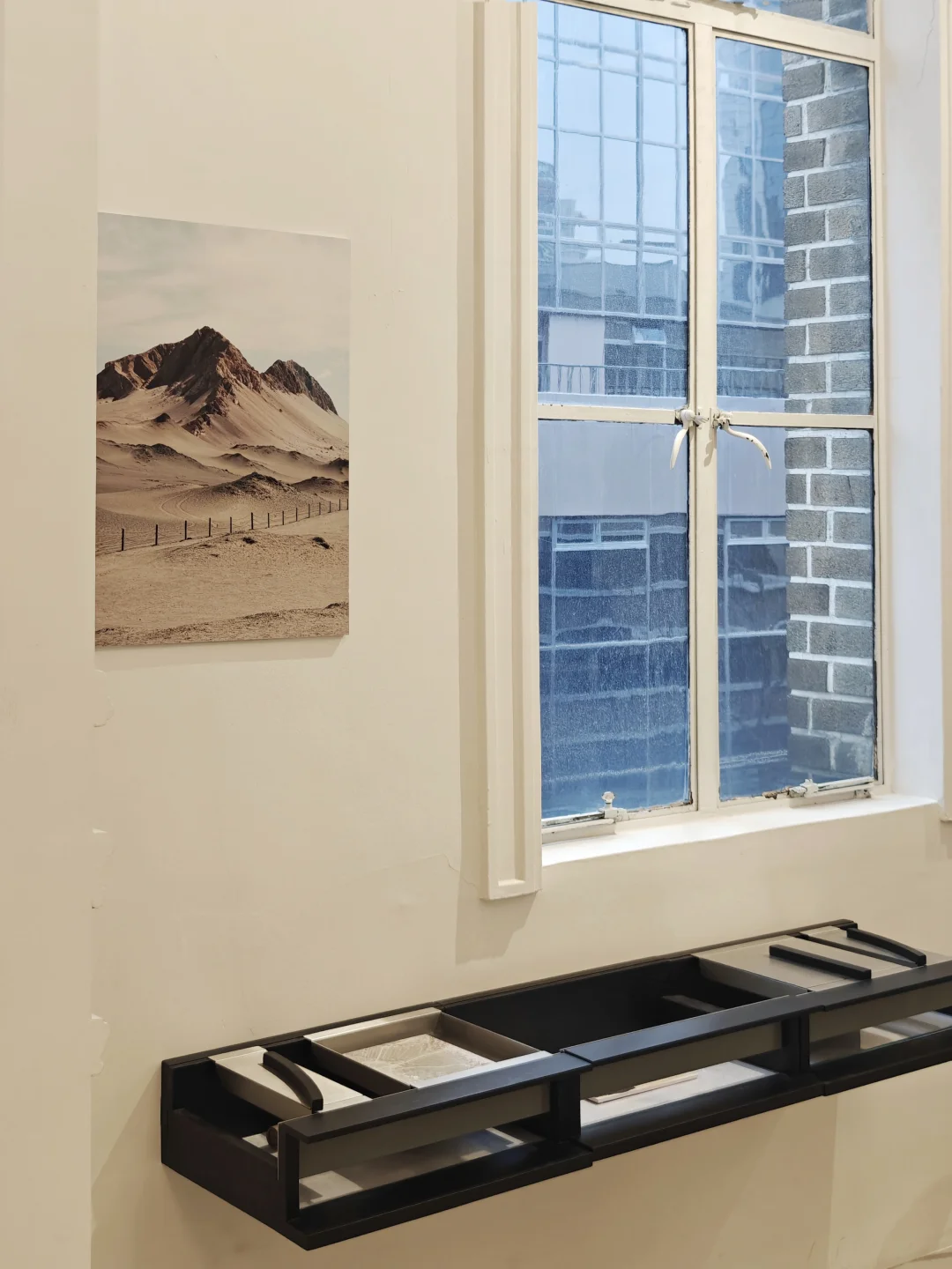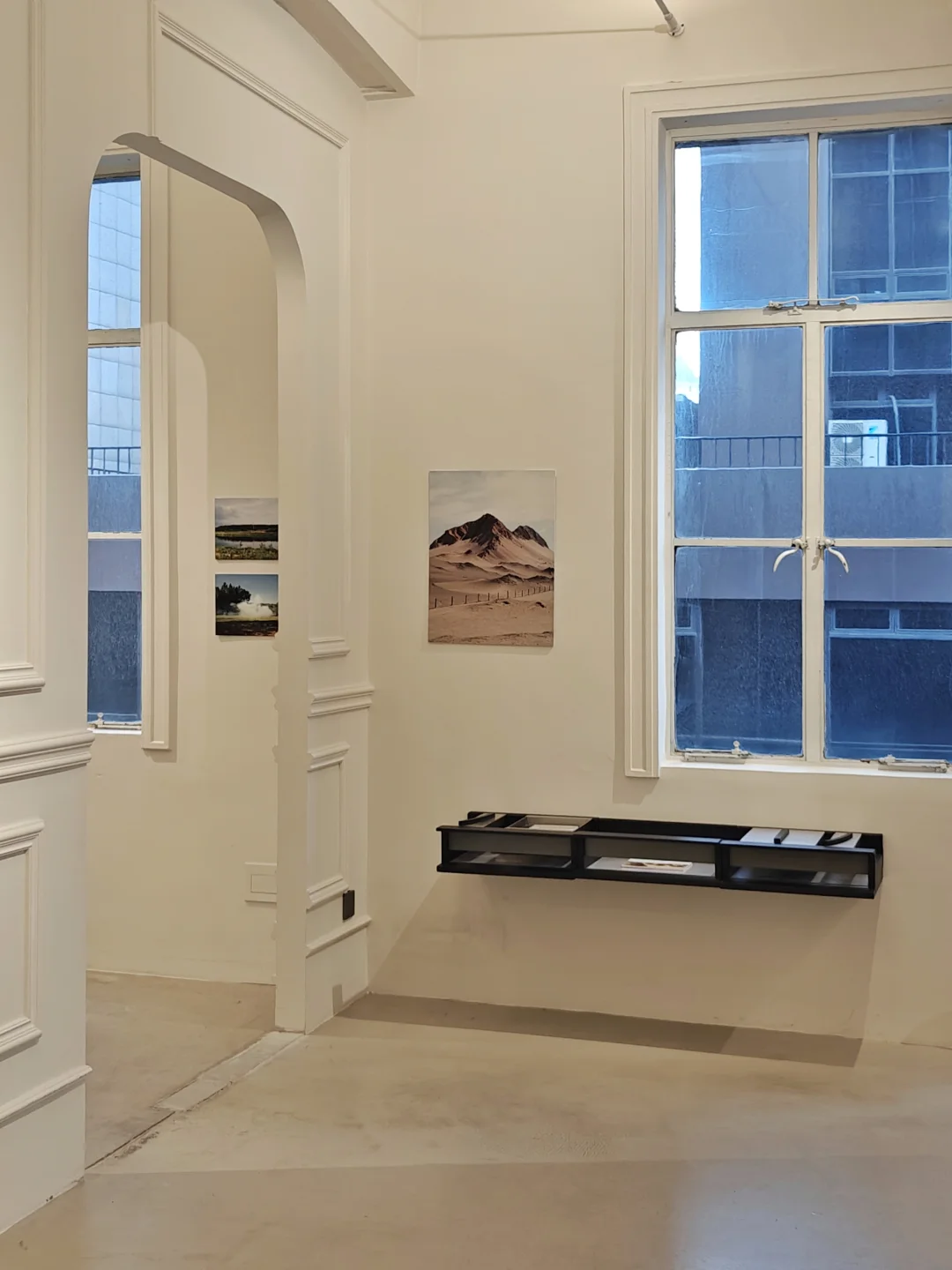 📷特意设计过的展陈空间和摄影作品形成对话,分割视角和留白设计,强化在风景外观察的距离感。