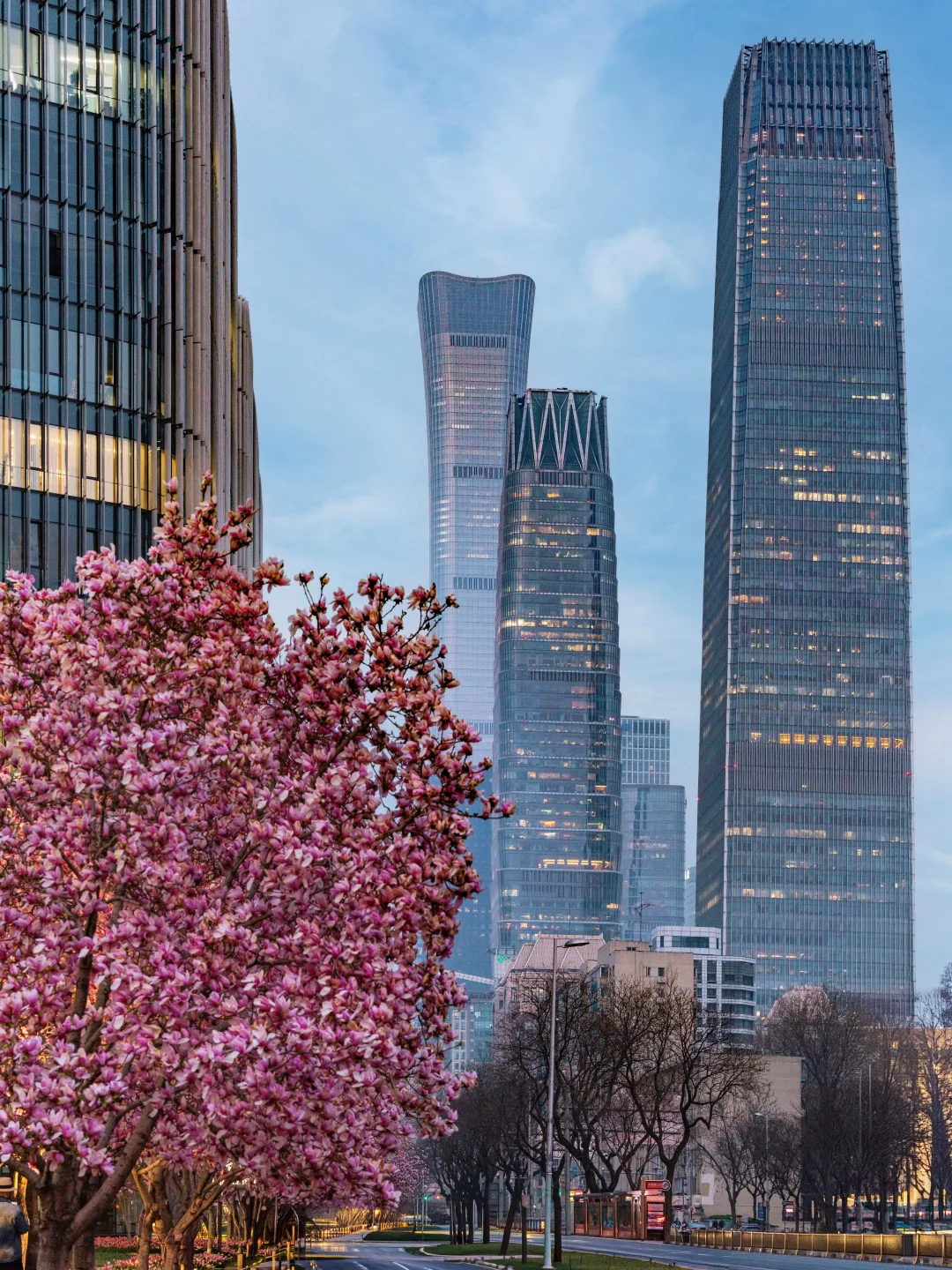 凌晨5点,没人的光华路国贸玉兰可太权威了