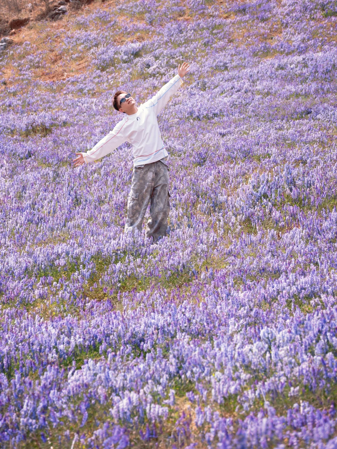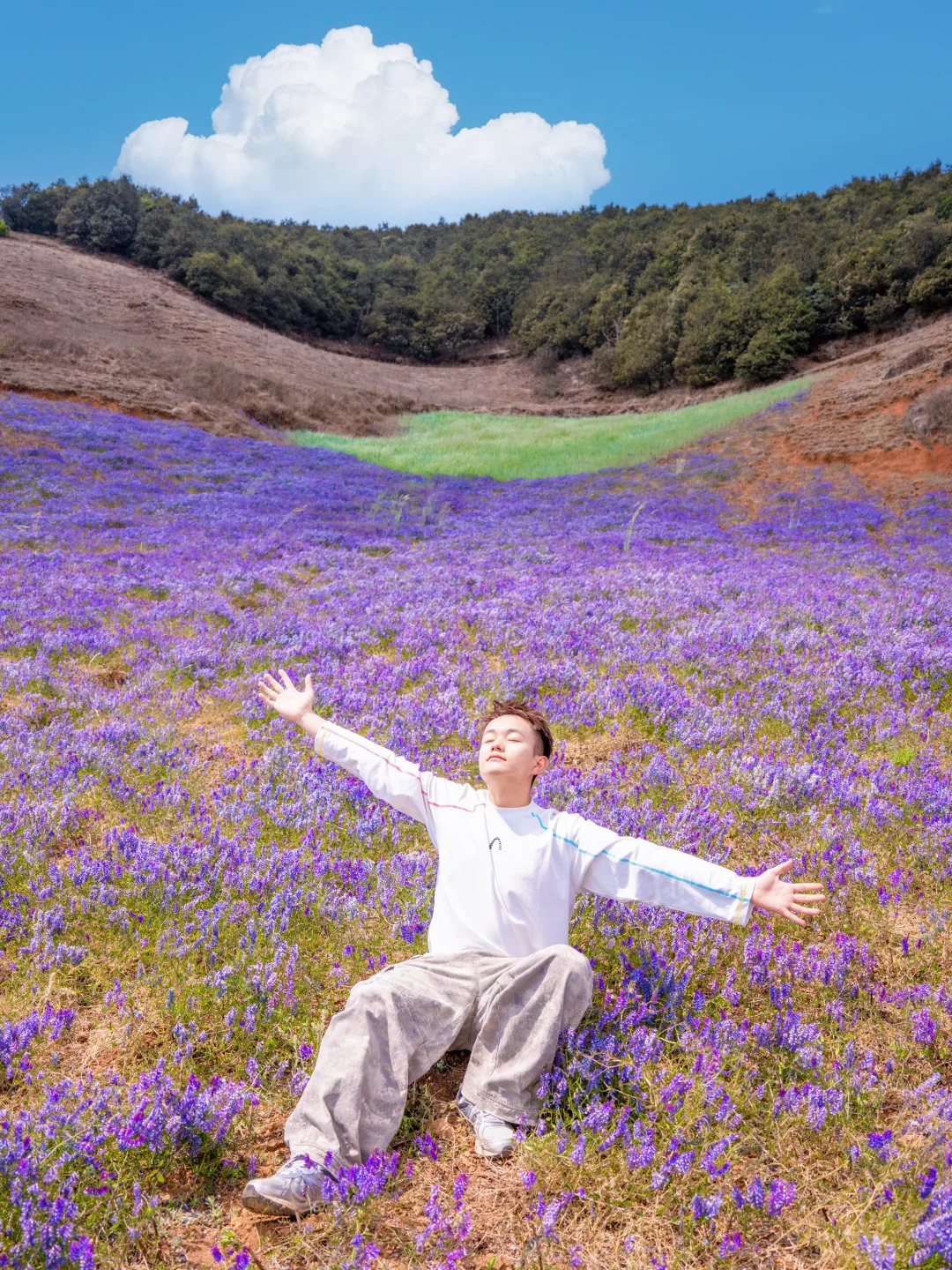 漫山遍野的紫花像打翻了调色盘 蓝天、白云、山坡和温柔的风 一切都刚刚好~ 📍寻甸凤龙山 🚗昆明出发1.5h直达,徒步难度低,新手也能轻松拿捏 ✨穿搭建议:浅色系衣服和紫色花海超搭,随手拍都是氛围感大片