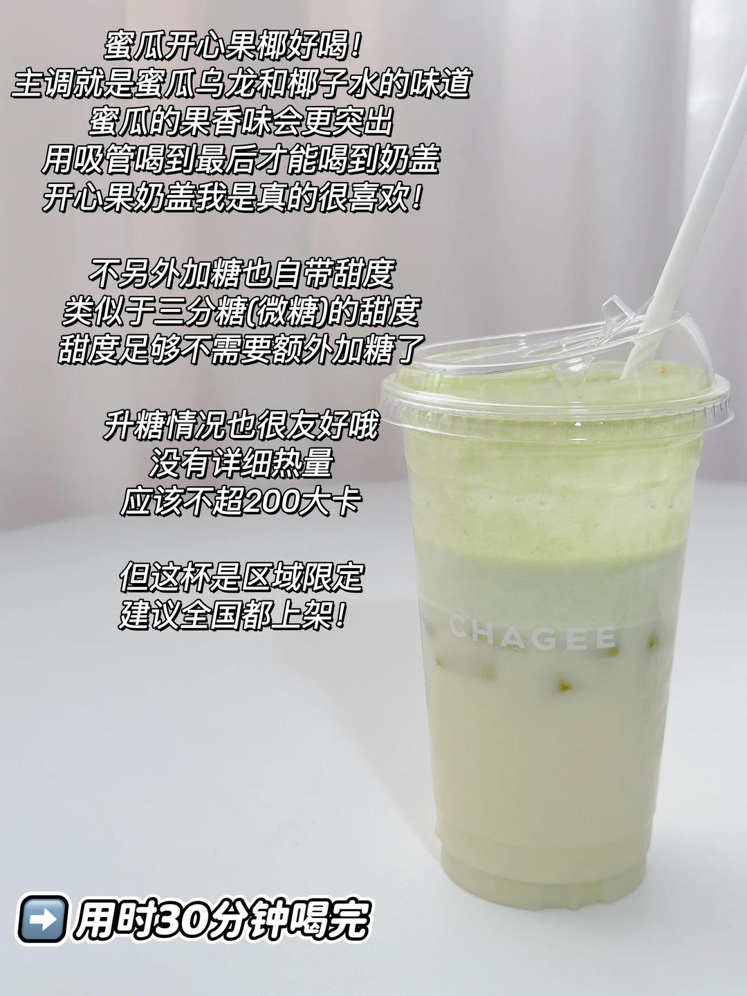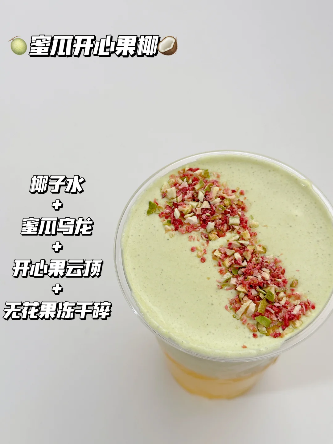 蜜瓜开心果椰好喝!主调就是蜜瓜乌龙和椰子水的味道,蜜瓜的果香味会更突出〰️用吸管喝到最后才能喝到奶盖,开心果奶盖我是真的很喜欢!