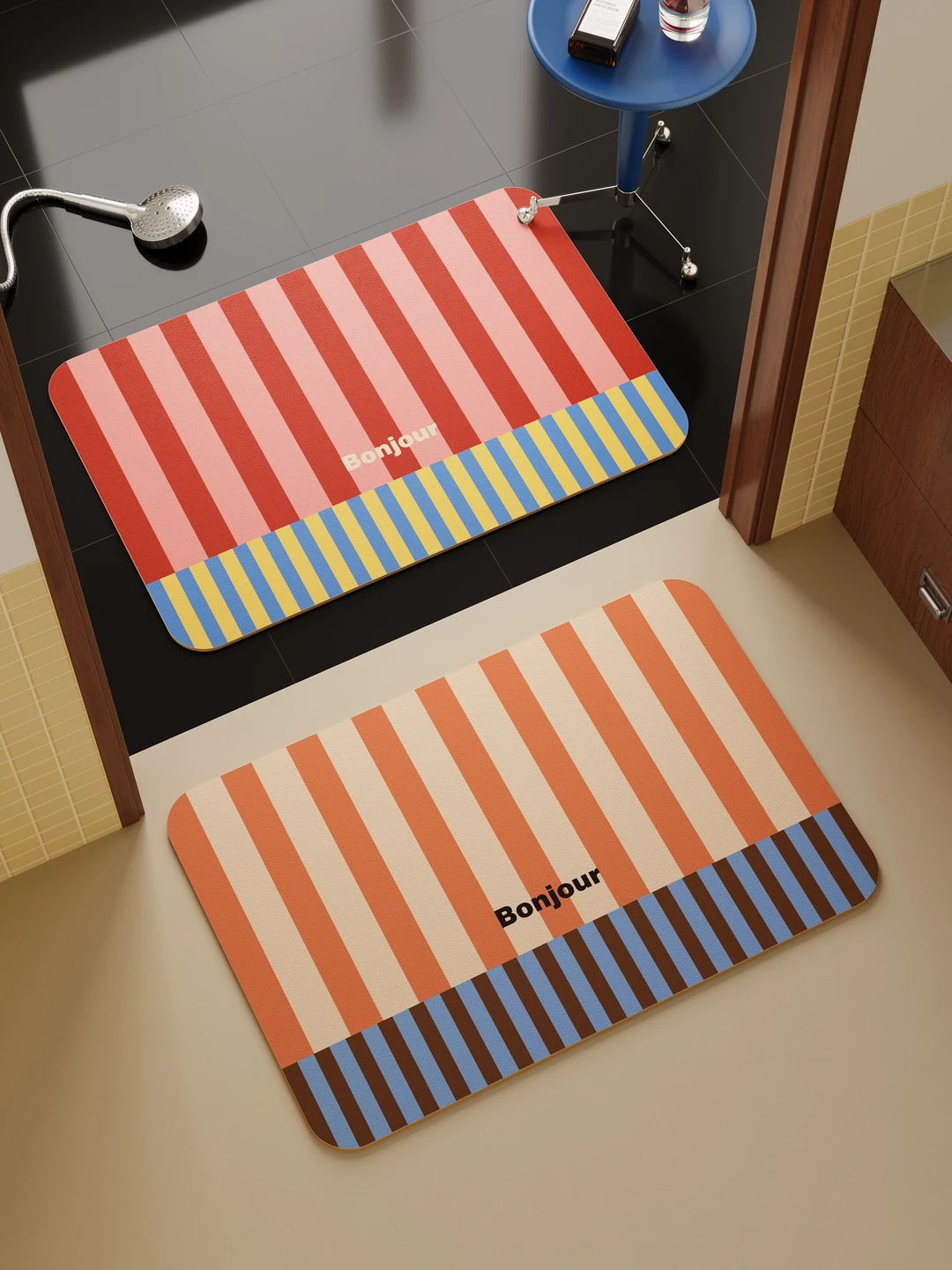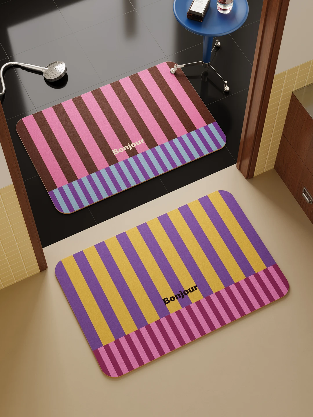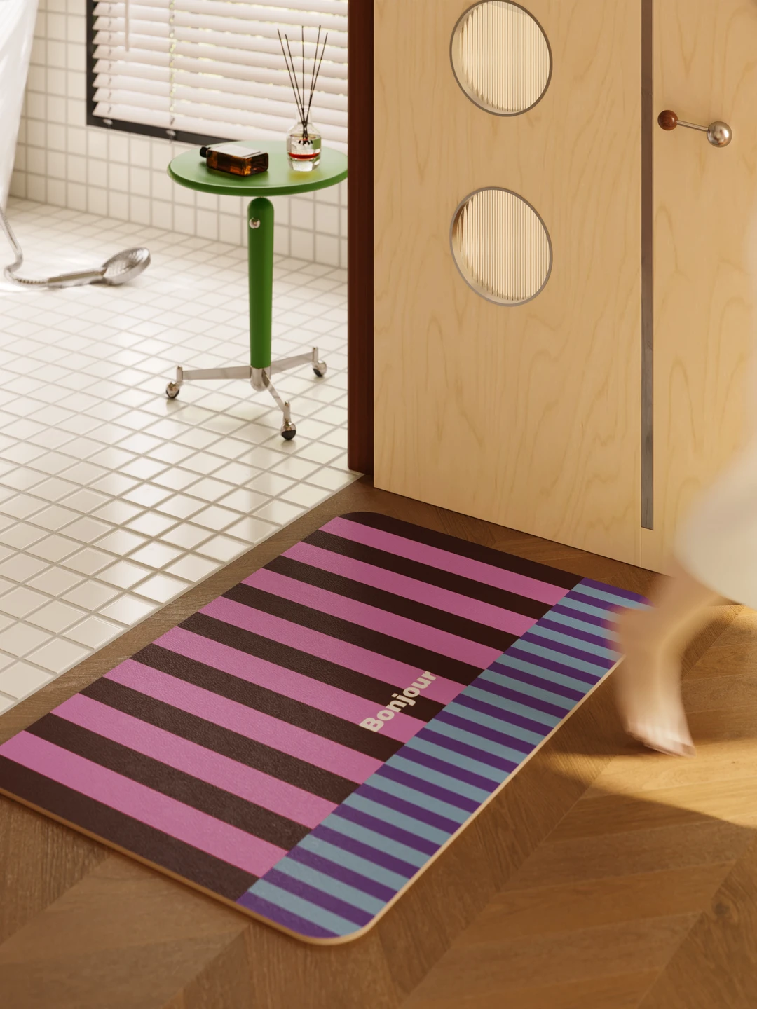 欢迎来到条纹的色彩宇宙,一个梦幻乌托邦! 把孟菲斯艺术色调踩在脚下✨ 拼搭出一个元气十足的浴室角落 超吸睛高饱和活力撞色 叠搭ins 风复古条纹 理性框架中满载明媚气息 让浴室克制而鲜活,时髦有趣 粉棕撞色像融化的草莓巧克力🍫 黄紫撞色像打翻的日落晚霞🌇 踩上去软 fufu 还能瞬间吸水 防滑底设计安全感拉满~ 拍照发圈被问爆链接的程度! 独居党 / 租房党闭眼冲,氛围感直接封神!
