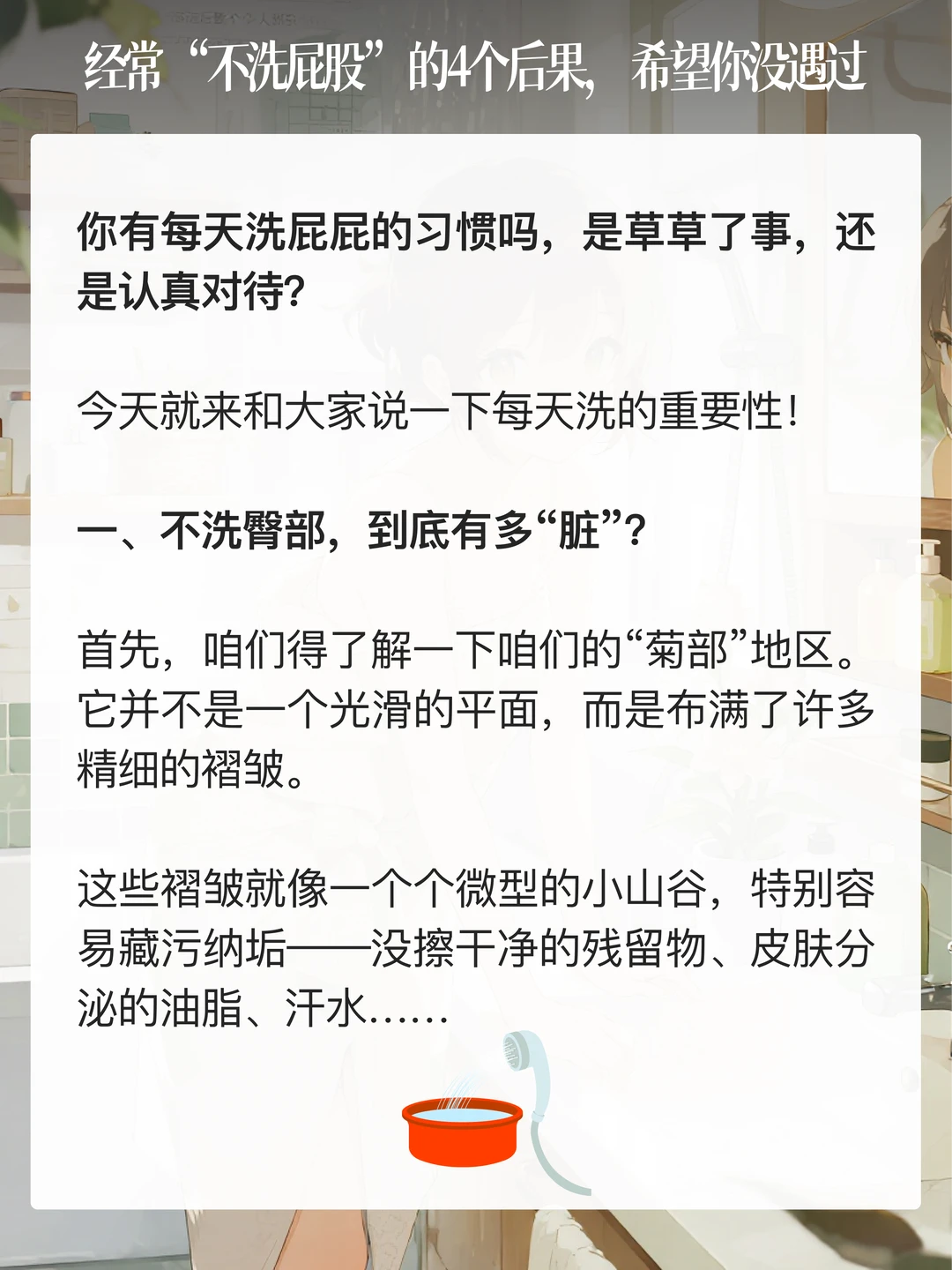 你有每天洗屁屁的习惯吗,是草草了事,还是认真对待?今天就来和大家说一下每天洗的重要性!