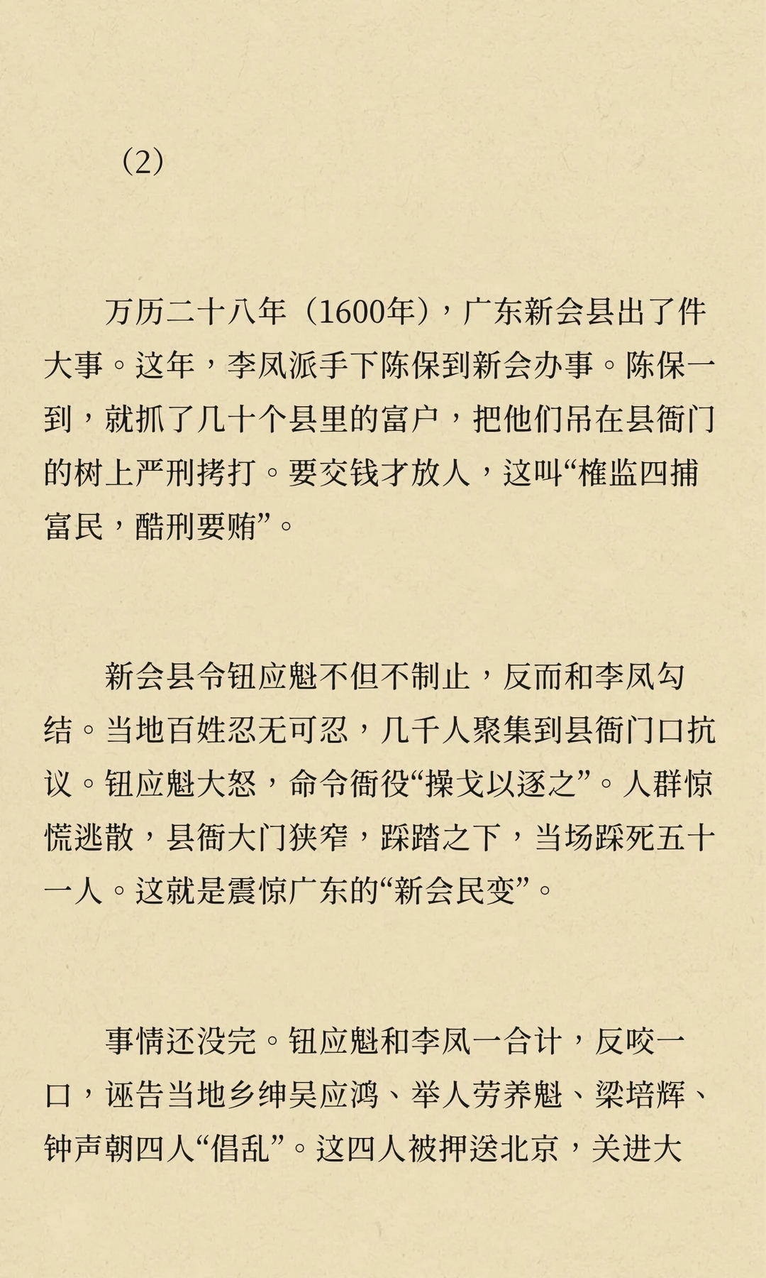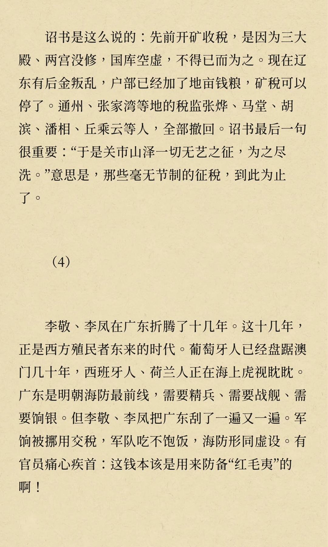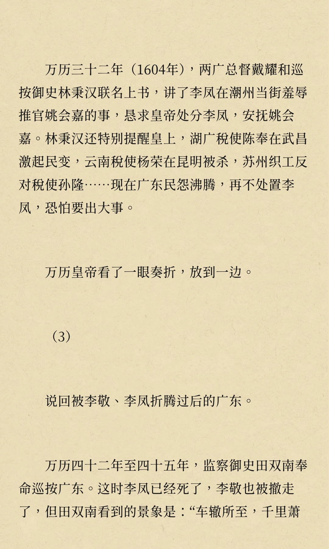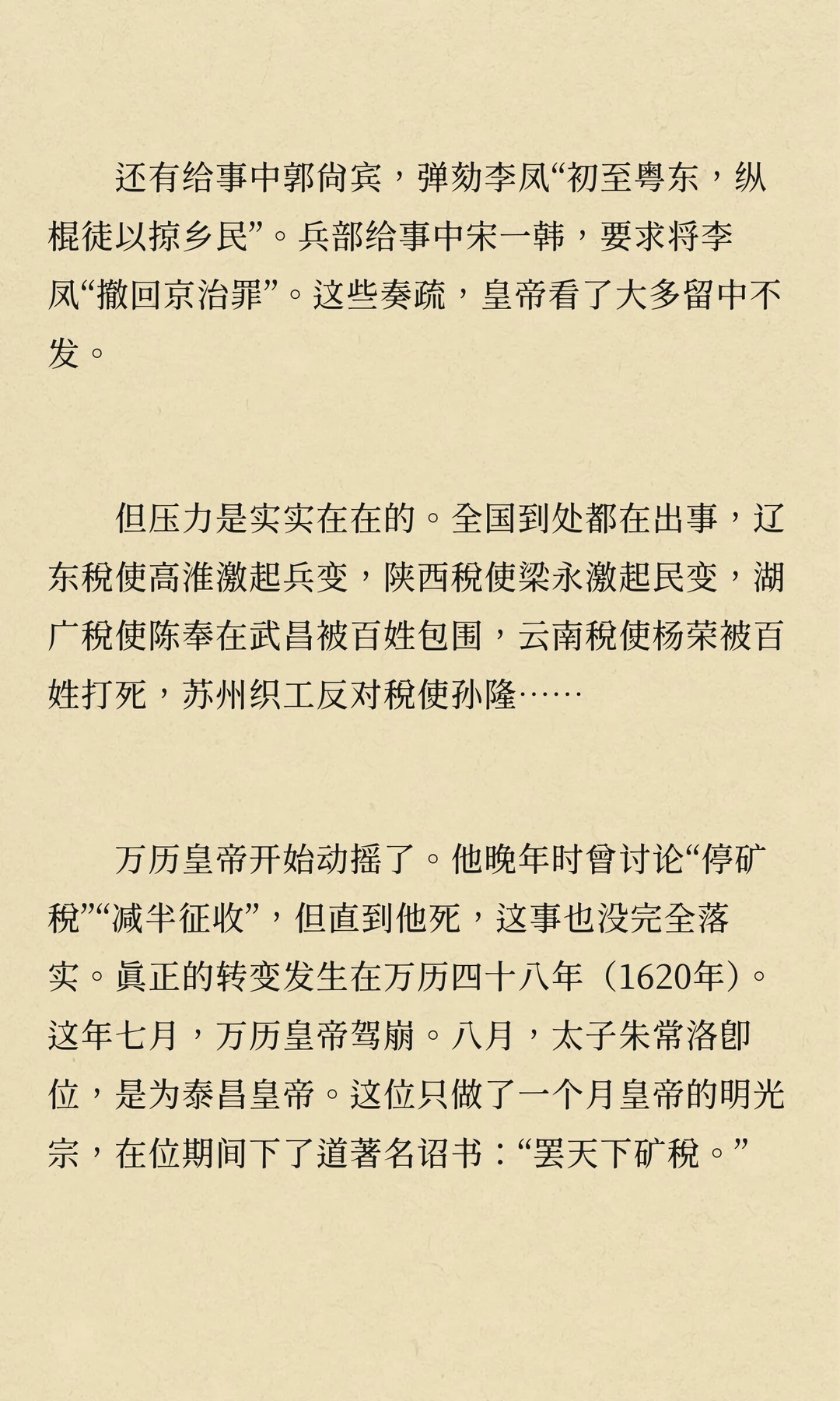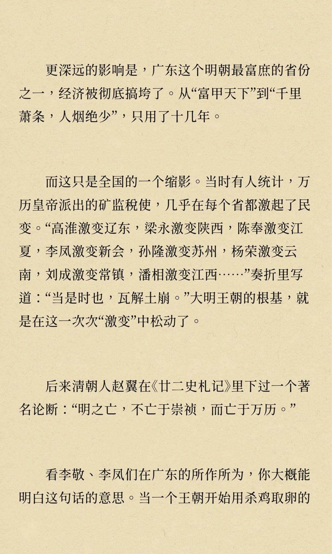 万历年间,矿税使李敬、李凤在广东开矿、收税,导致民怨沸腾,社会秩序崩溃,经济凋敝。他们的贪婪与暴政激起了多次民变,最终拖垮了广东经济,成为明朝衰败的重要标志。