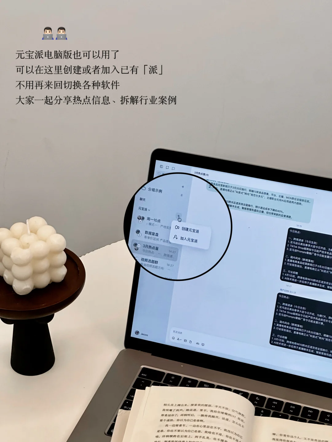 我一般会用元宝派电脑版来落地,和团队创建专属「派」,或根据需求加入已有「派」,不再切换各种软件,大家协作分享信息、拆解行业案例,很贴合工作节奏。现在电脑也能用元宝派了,工作时也能和派友唠唠效率拉满。