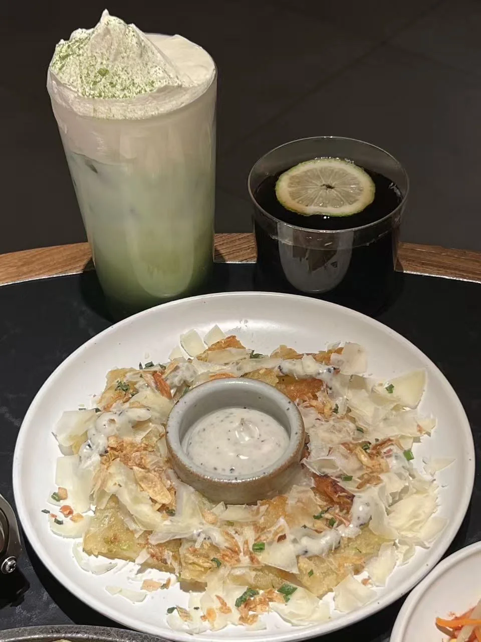 土豆饼表层撒了帕玛森芝士,咸香浓郁。松露酱是灵魂!独特的香气瞬间提升口感,每一口都能吃到土豆的绵密和松露的高级感☺️