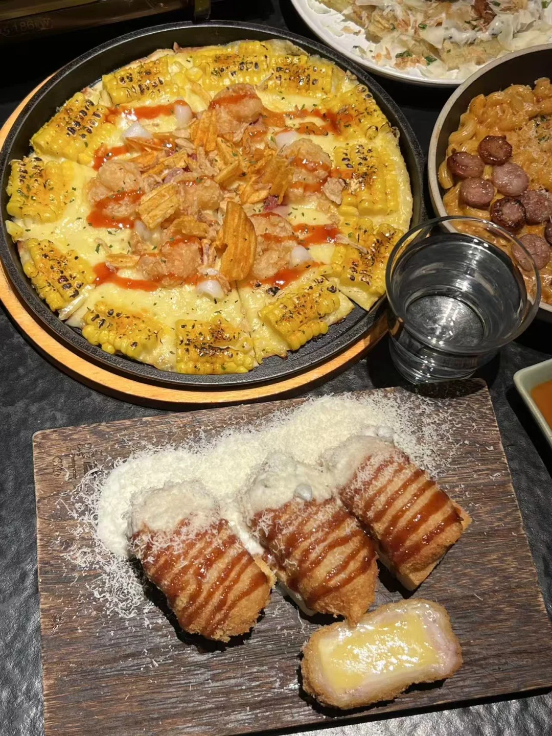 薄底披萨yyds!饼皮烤得焦香酥脆,边缘带着微微的炭火味。铺满了鲜甜的大虾仁,每一只都Q弹饱满,搭配甜糯的玉米粒。芝士给的超足,拉丝能拉半米,奶香混着虾鲜,香到舔盘子!😘