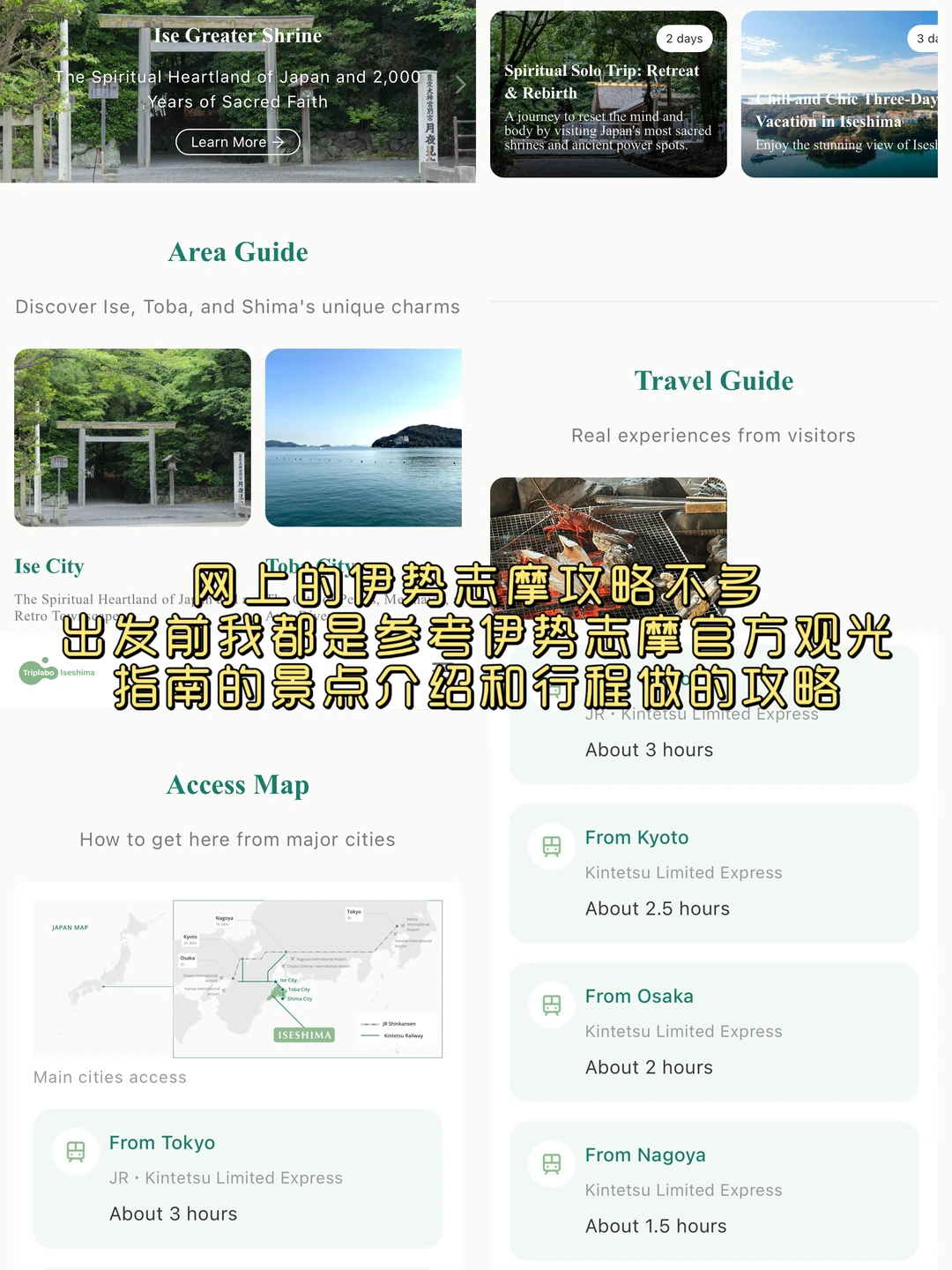 ①网上关于伊势志摩的攻略较少,可以参考伊势志摩观光指南上的景点和行程做攻略。