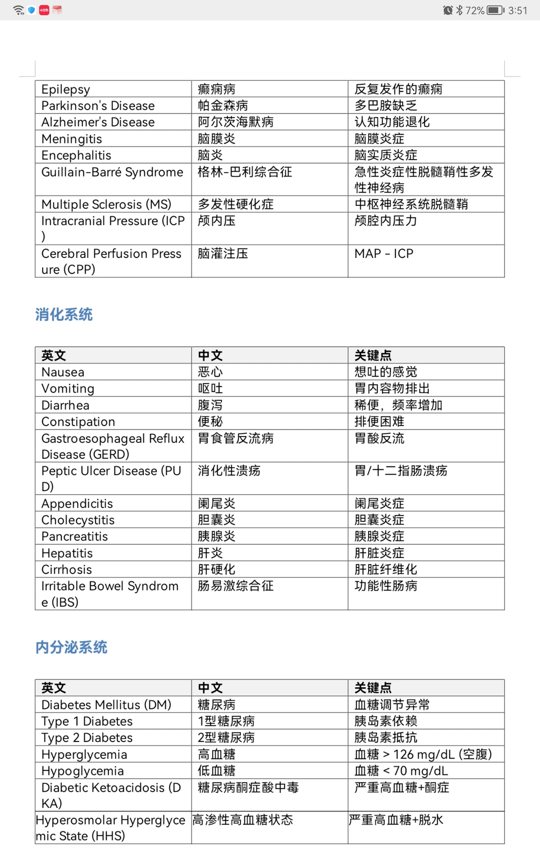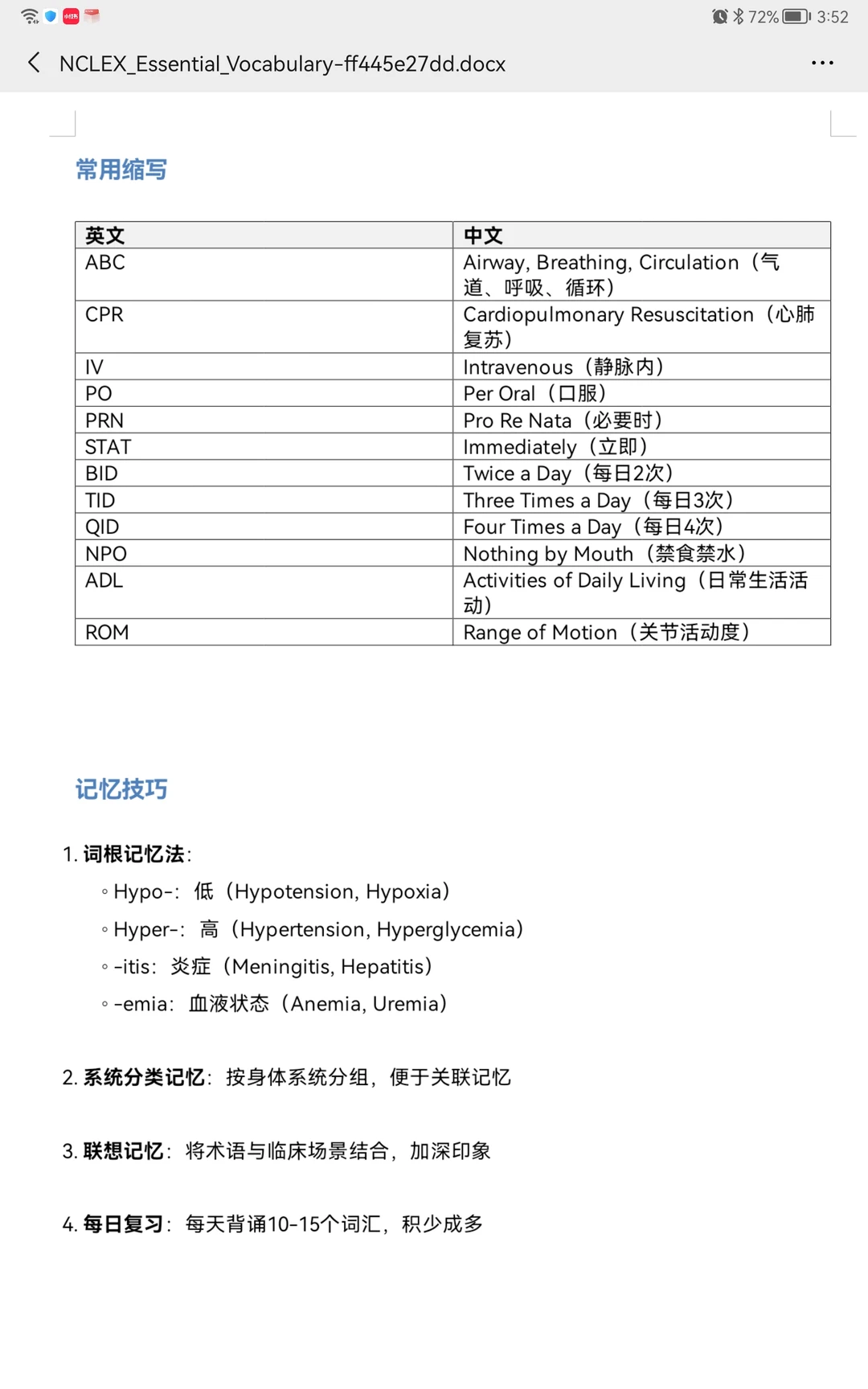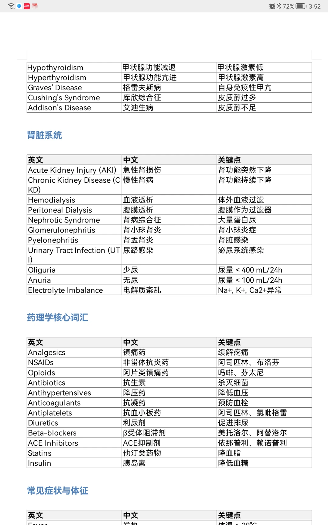 各个系统常见的中英文高频词汇 还有需要注意的关键点来啦 比较简洁一些 方便好记 不仅是背定义 要理解在临床中的英语 完整版词汇知识点 RN考试资料