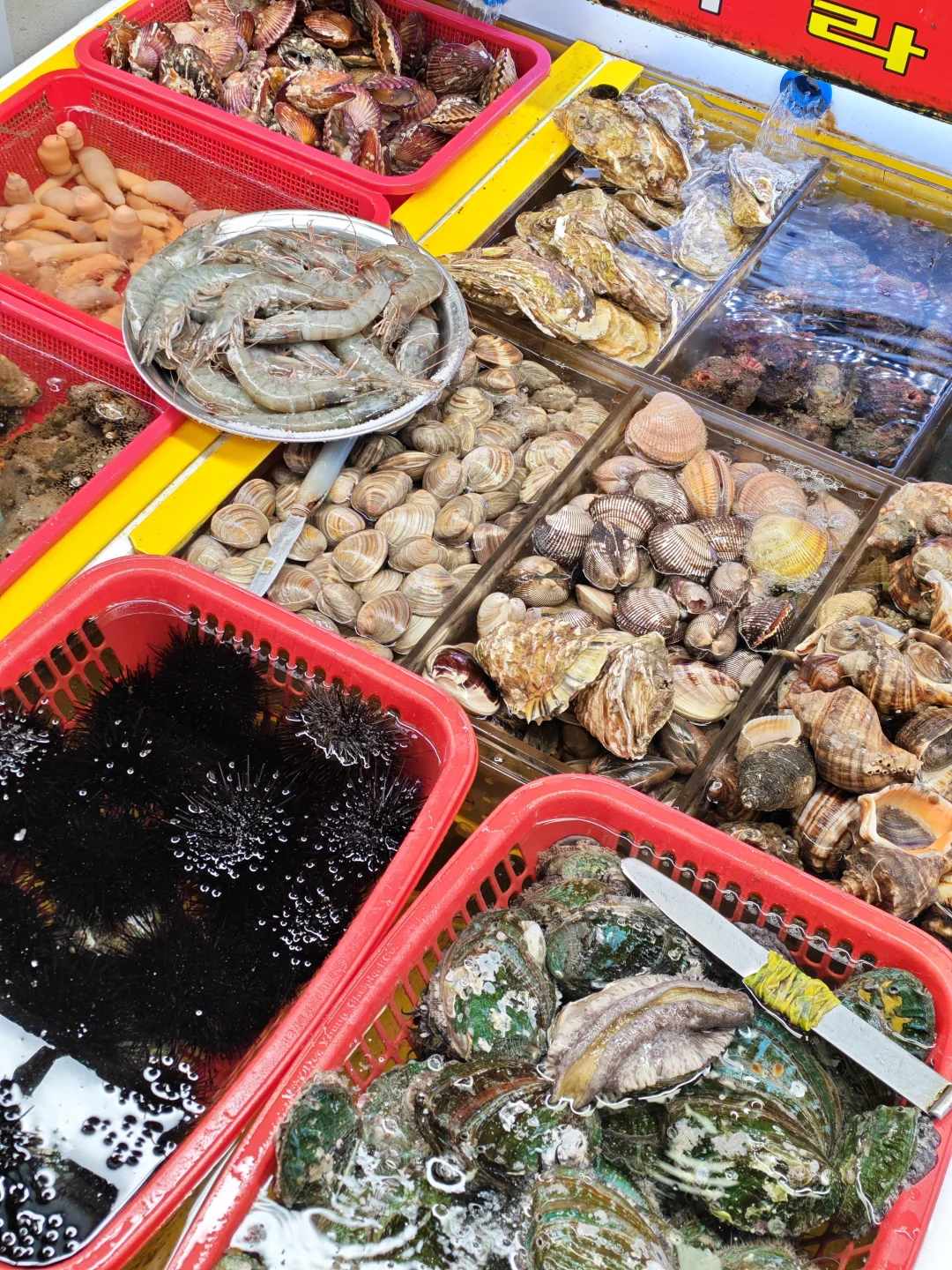 5️⃣札嘎其市场:从松岛约5-10分钟。这里1楼是活鱼摊,可现选现杀;2楼是餐厅。推荐坐在户外露台,傍晚能边吃烤鱼边看釜山港大桥夜景。
