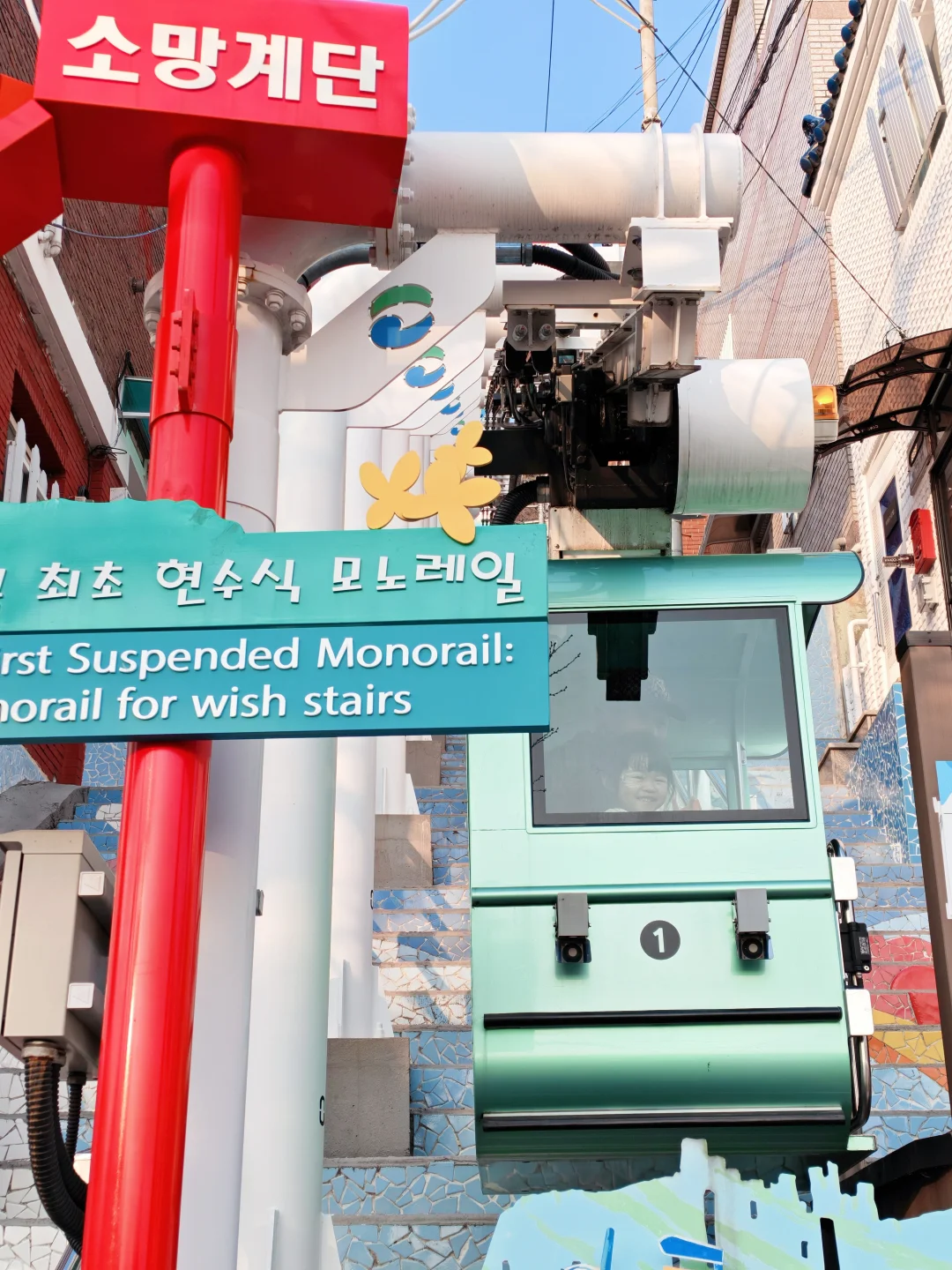 从甘川约10分钟。这里有两个选择:想俯瞰全景选松岛海上缆车,建议乘至对岸的岩南公园;想体验韩剧氛围或省时省钱,💜192阶梯,这个免费小缆车🚡就是居民区里供居民上下楼梯的工具,缆车分两段,中间要下车换乘。💜192 阶梯 定位: