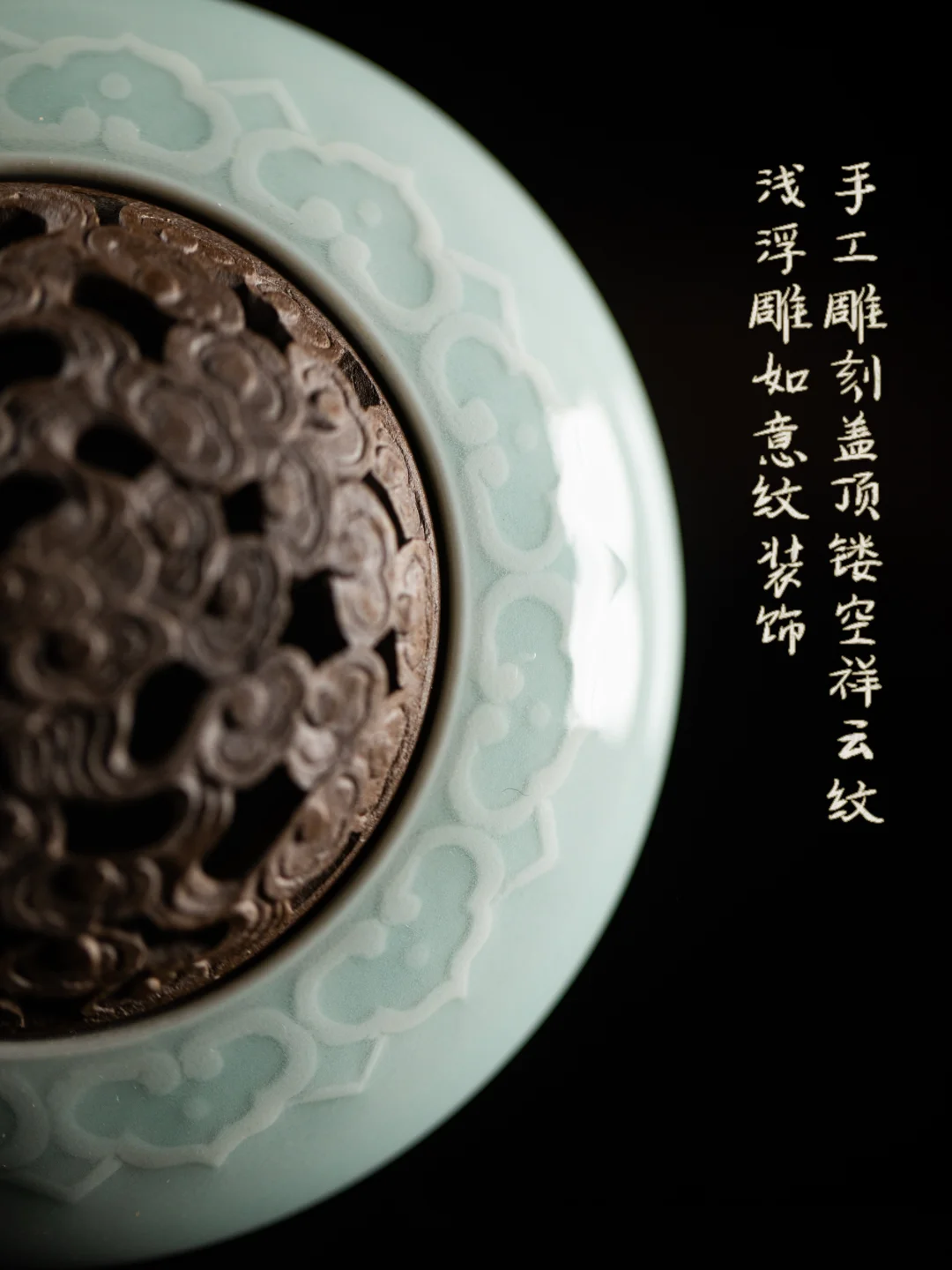 釉色影青,积在炉身上,像一汪浅水。如意纹浅浅地刻着,水光里若隐若现。雨后看它,清凉入眼,心里的燥气也跟着散了。