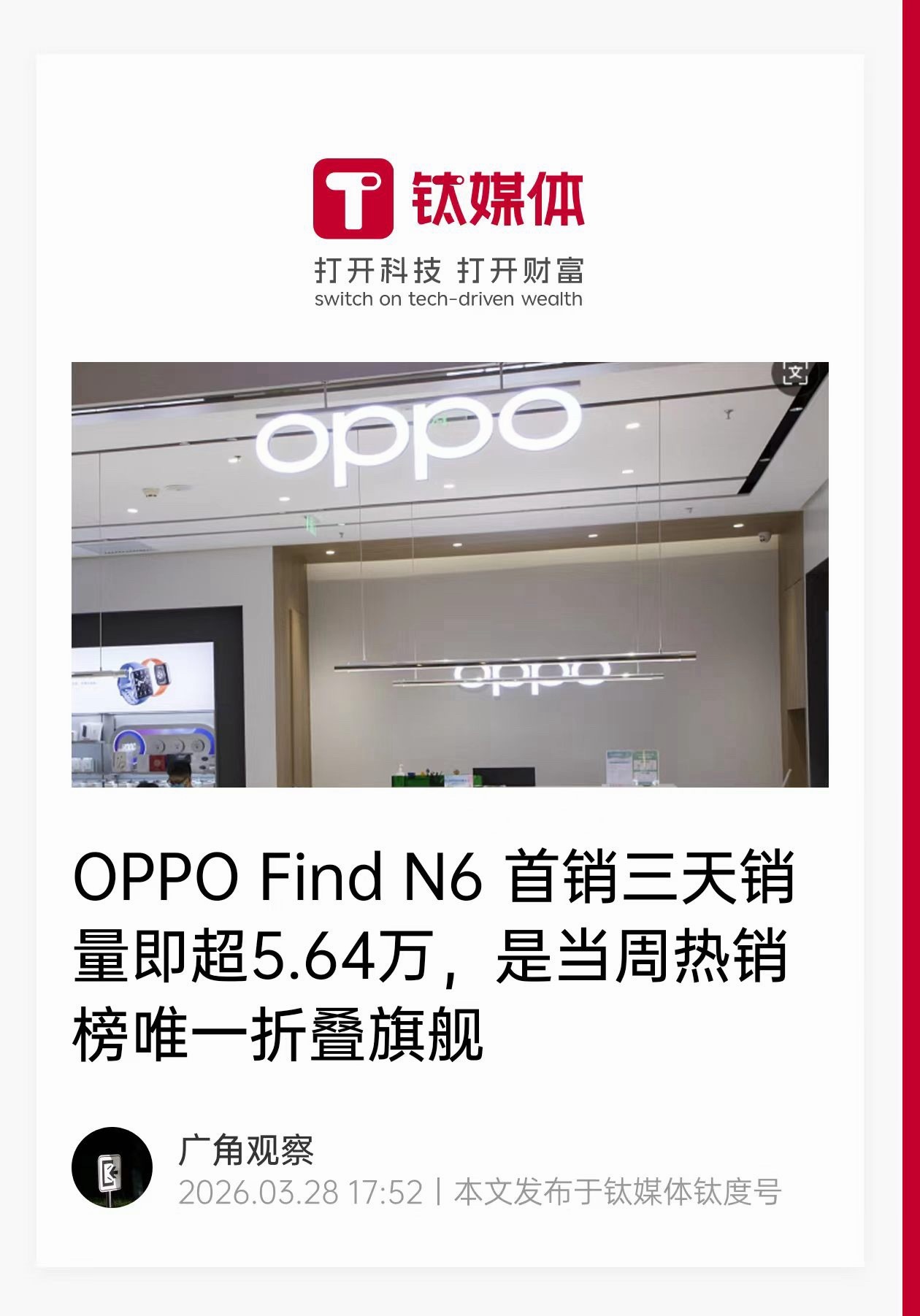 OPPO Find N6这波开售劲儿很猛啊,首销3天5.64万台,卖得很不错呀!
