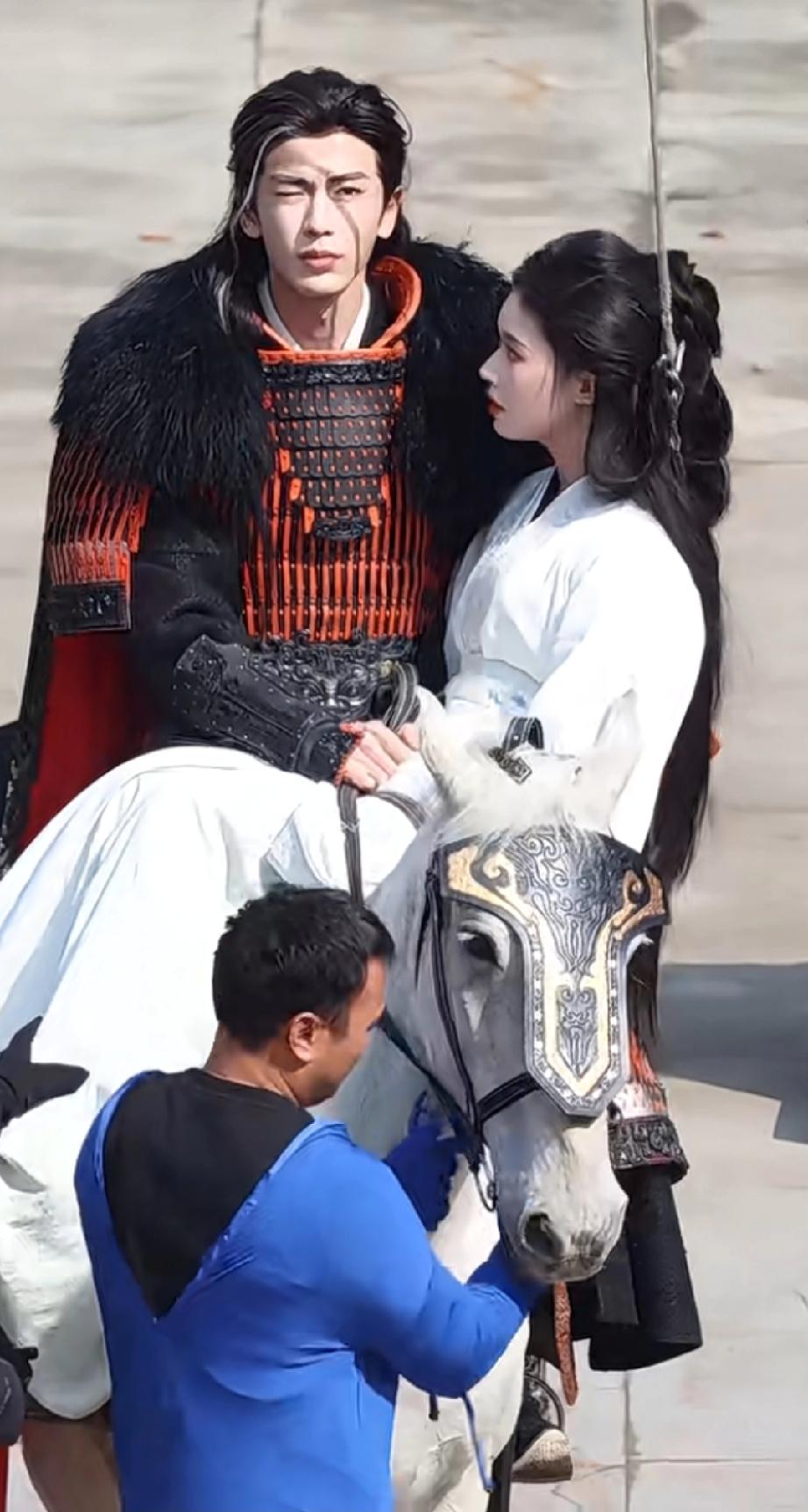 张凌赫、林允新剧路透,两人共骑一匹白马 这身盔甲好像没有【逐玉】的好看,不过还