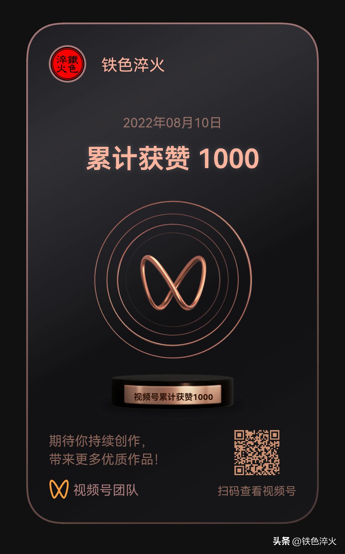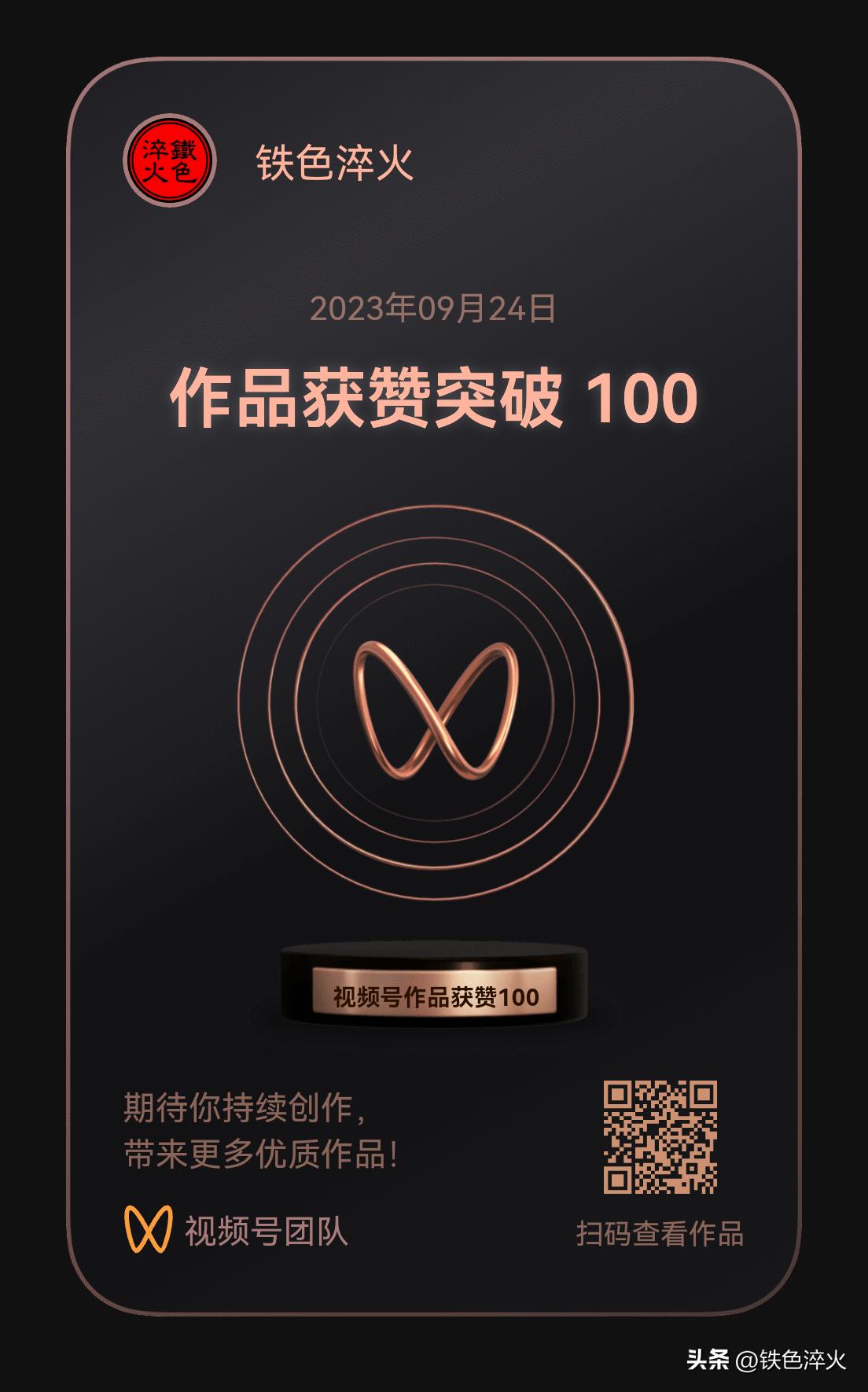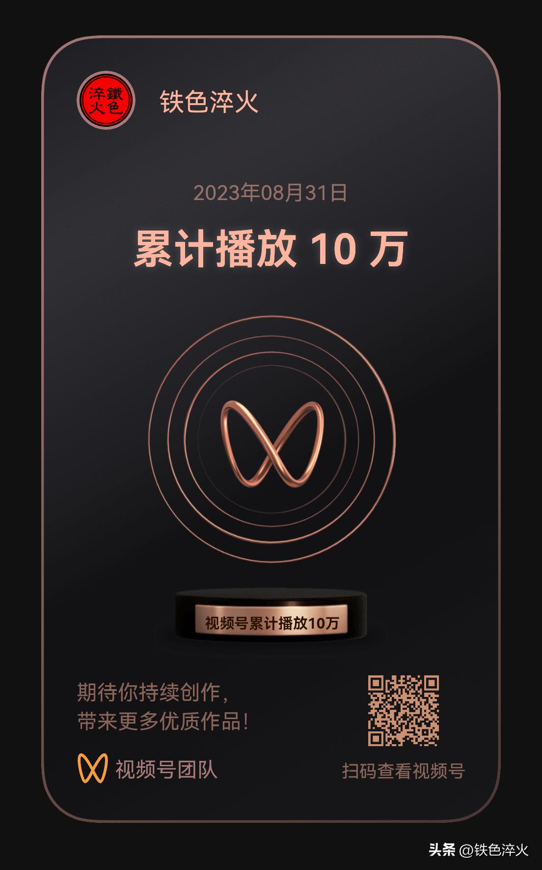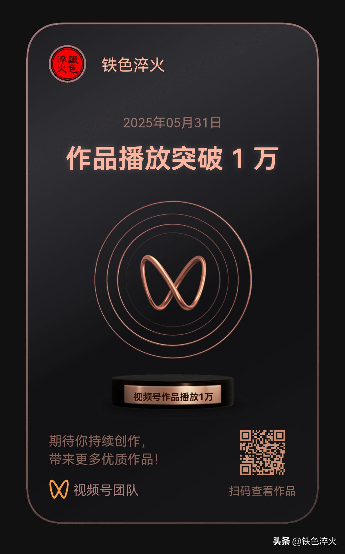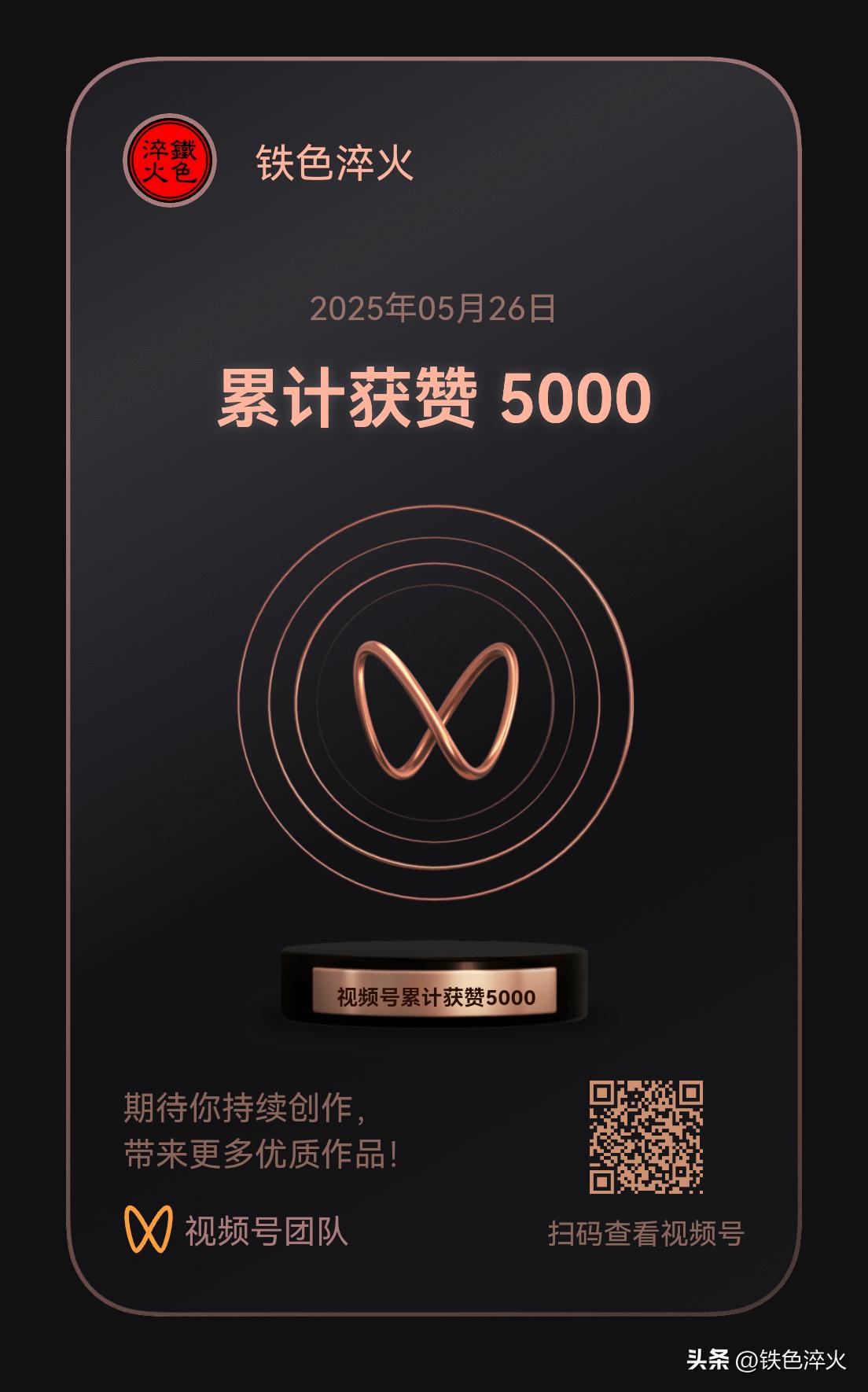 截止2026年3月28日,“铁色淬火”视频荣获的创作勋章,继续努力加油传播正能量