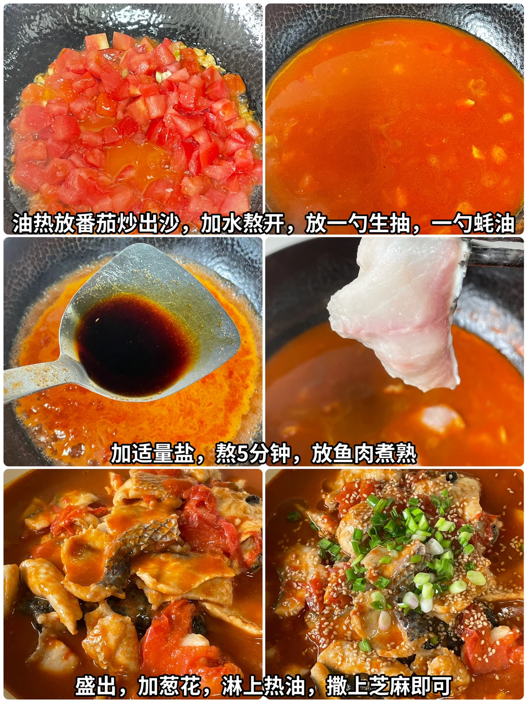 番茄鱼的汤色红亮诱人,散发着自然的果香。鱼片薄嫩无刺,入口即化。番茄熬出的浓汤酸甜开胃,温和不辣,每一口都裹着鱼肉的鲜嫩。舀一勺汤汁拌饭,小朋友能多吃一碗。 做法如下⬇️: 买回来的鱼片放入花雕酒,胡椒粉,盐,葱姜,水淀粉抓匀腌制15分钟。切入多多的番茄,准备一点蒜末,切一点葱花。 起锅烧油,油热姜蒜炒香,然后放入番茄炒出沙,加入水熬开,放一勺生抽,一勺蚝油,适量的盐,再熬5分钟,然后关小火,下入鱼片煮熟,盛出到碗中,加入葱花,淋上热油,撒上芝麻即可
