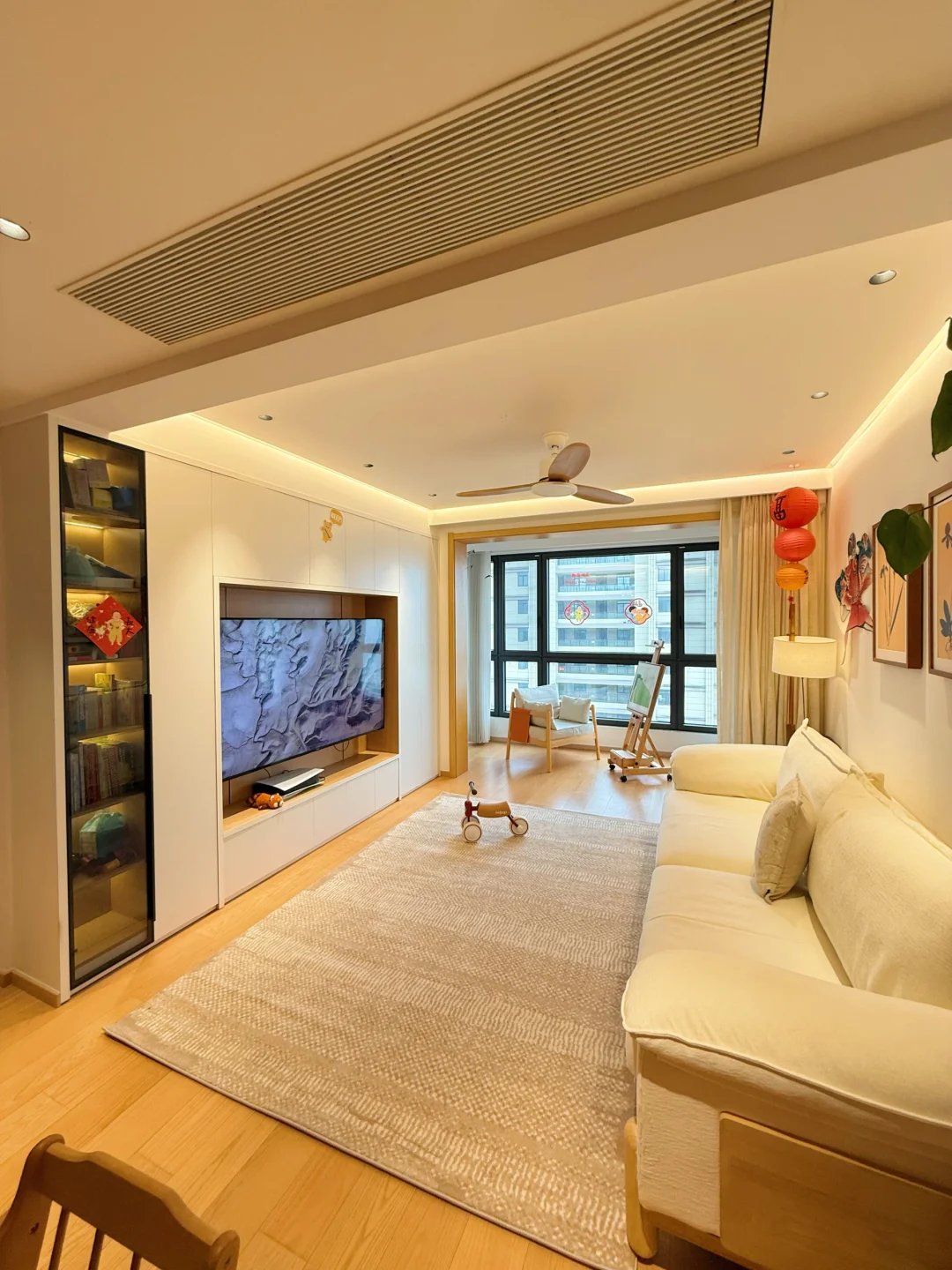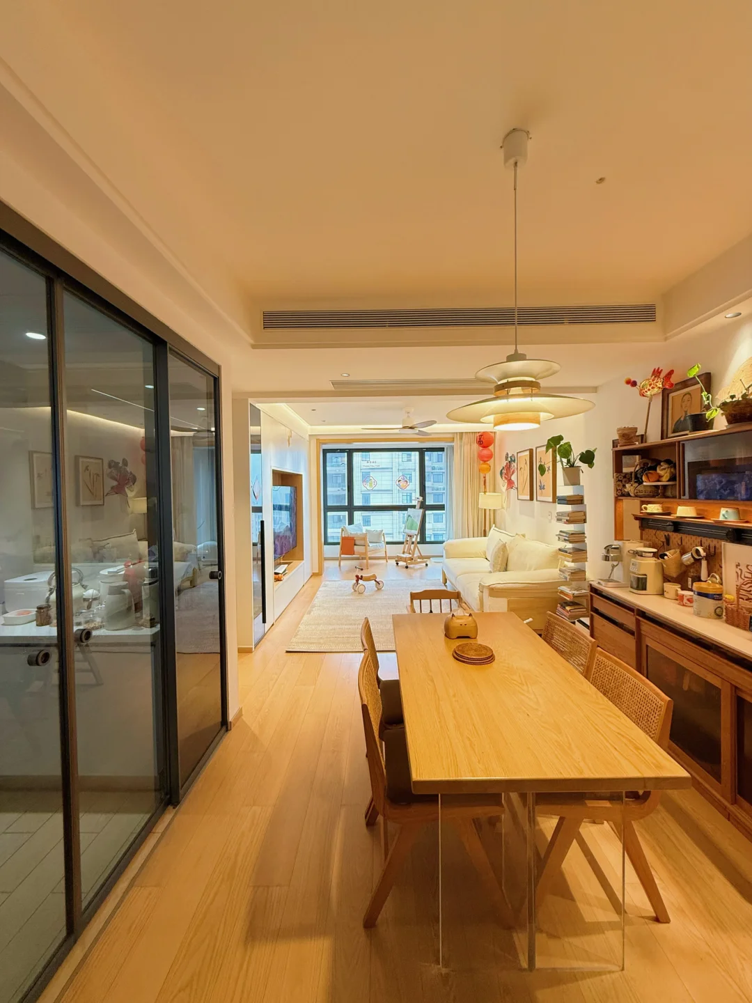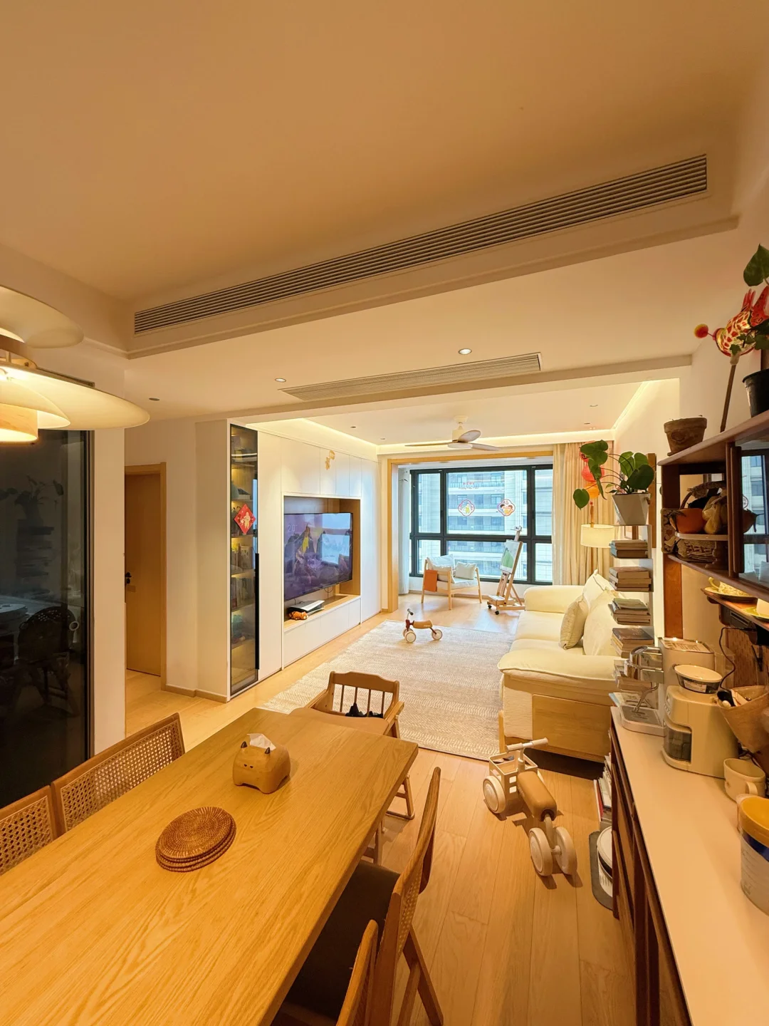 我家房子🏠面积103平 套内91平,三室两厅两卫的格局 毛坯房自装,没有找装修公司 硬装落地16W,落地效果既通透治愈,又温润高级,真的越住越爱了。 坐标安徽黄山屯溪 全新木地板通铺,阳台封了落地窗 还装了中央空调,自装也是极尽所能的节约了 最后也花了16W,不过最终效果还不错🫰