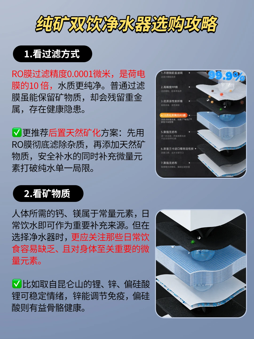 搭RO反渗透技术,先滤纯水再矿化,110余种有害物质去除率高!