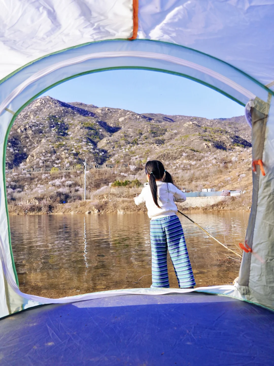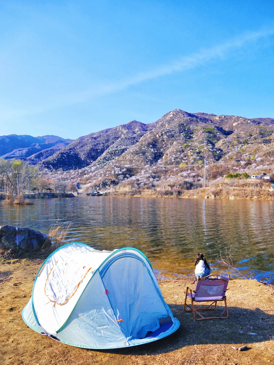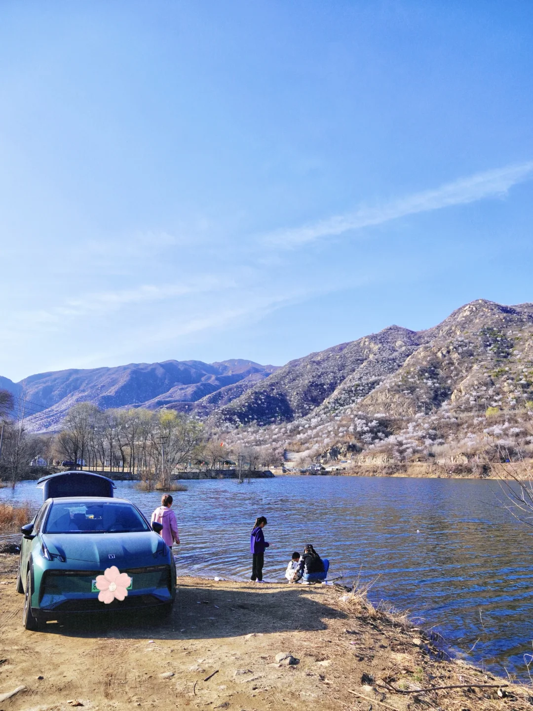 3.27实拍📷怀柔沙峪口山花绽放春意正浓 开车偶然间发现的湖边免费露营地视野绝了 车可以直接停到水边⛺️轻松不累很方便 如果架杆钓鱼🎣会有巡逻人员收费 但不钓鱼只露营、野餐、玩水…免费没人管 位置在沙峪口水库南岸🅿️可以停10多辆车