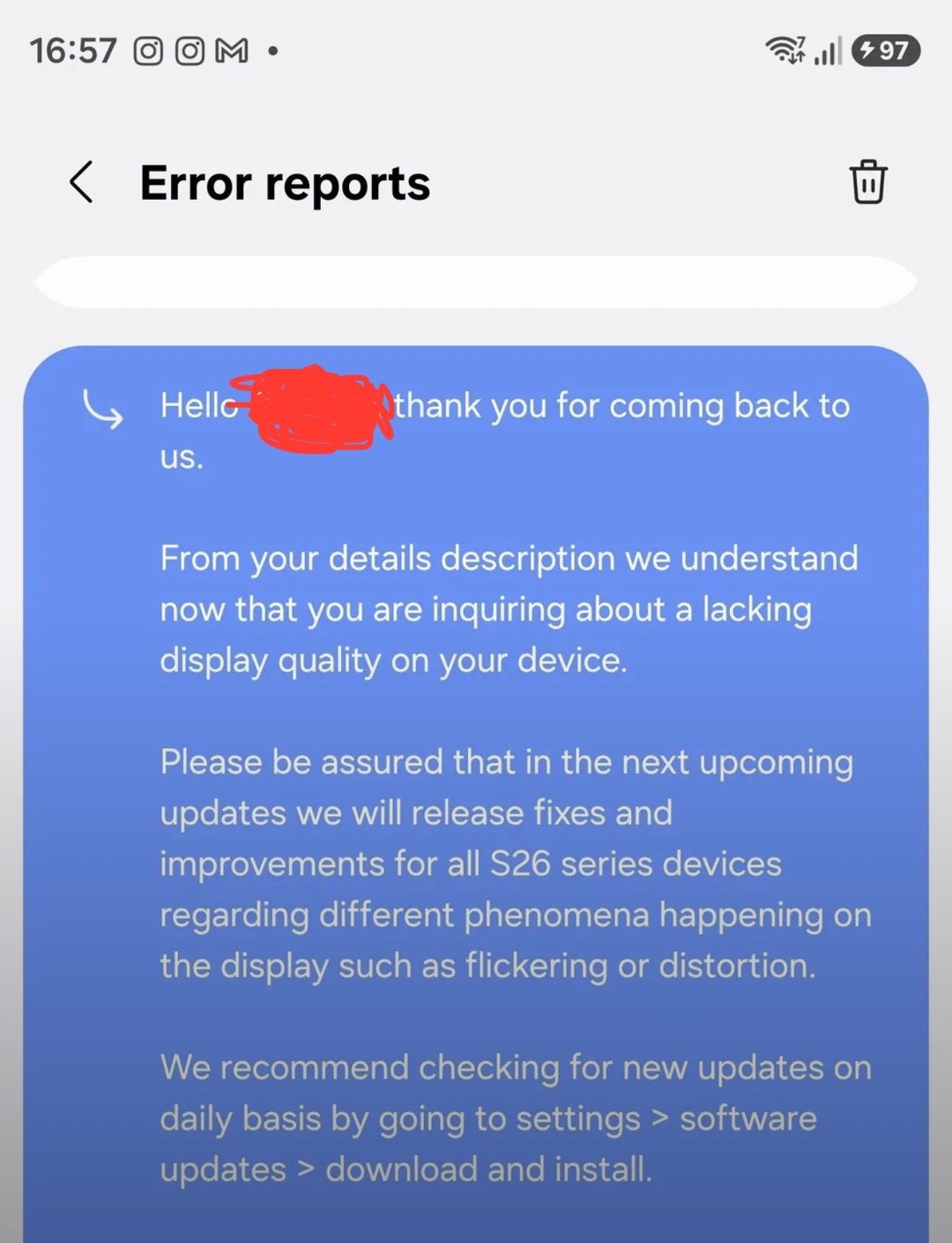 三星工程师在社区回复用户关于 Galaxy S26 Ultra 显示效果问题有望