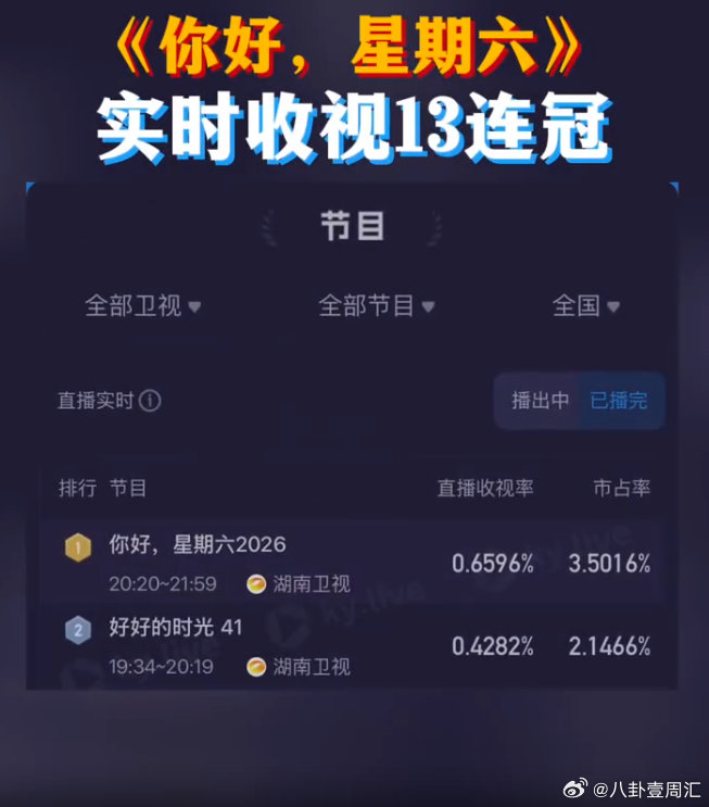 你好星期六收视13连冠你好星期六 哇哦!hi6今晚收视再创新高,喜提13连冠,超