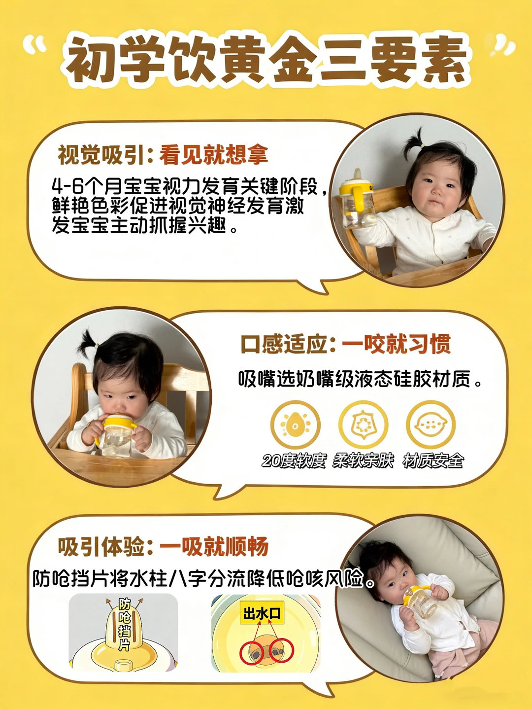 -她来找我聊,我就把之前自己选学饮杯的经验跟她说了说——小月龄阶段,我觉得比较关键的几点是:不呛、不吞气、不胀气。