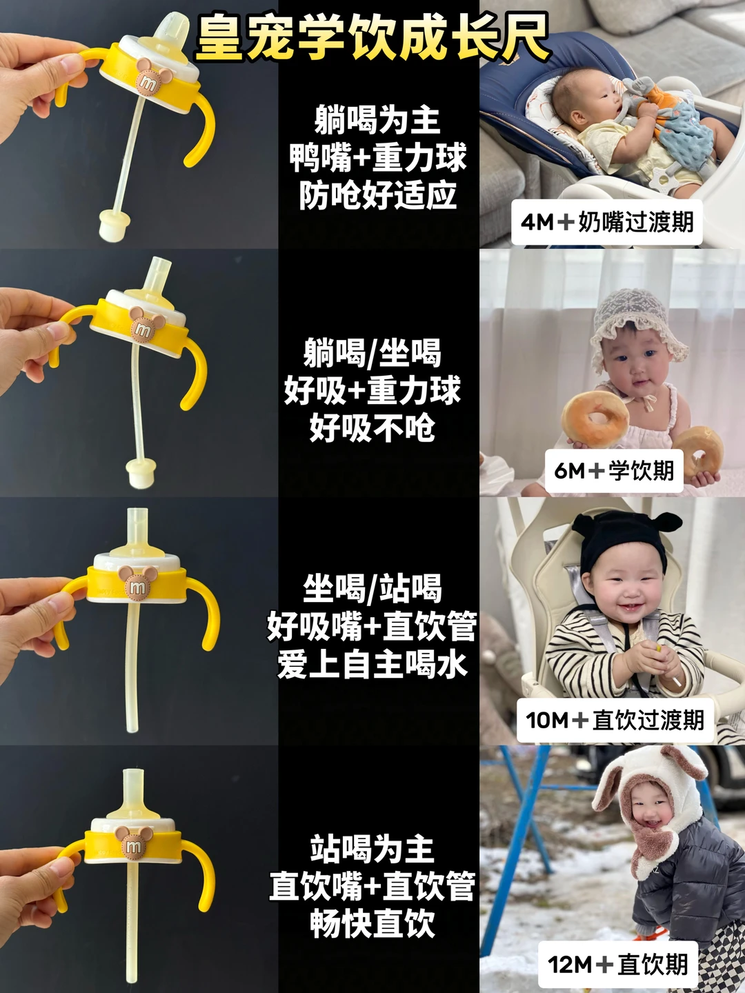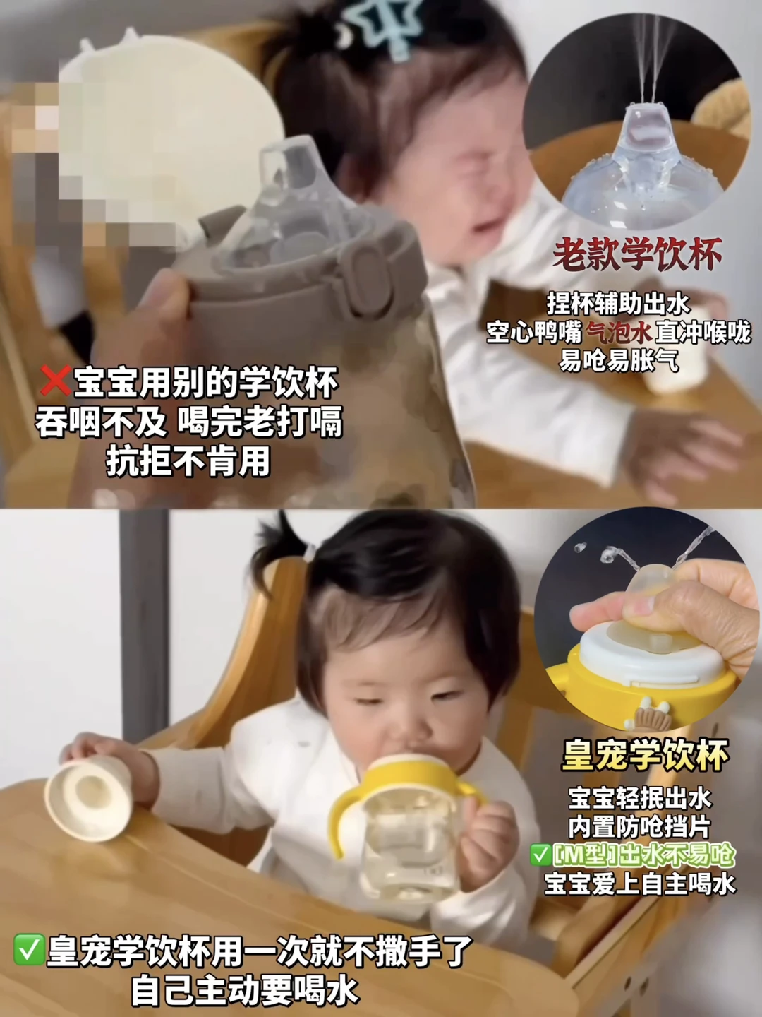 后来她试了这款皇宠学饮杯,用了一段时间跟我说,宝宝接受得还不错,自己抱着喝也没怎么呛过。