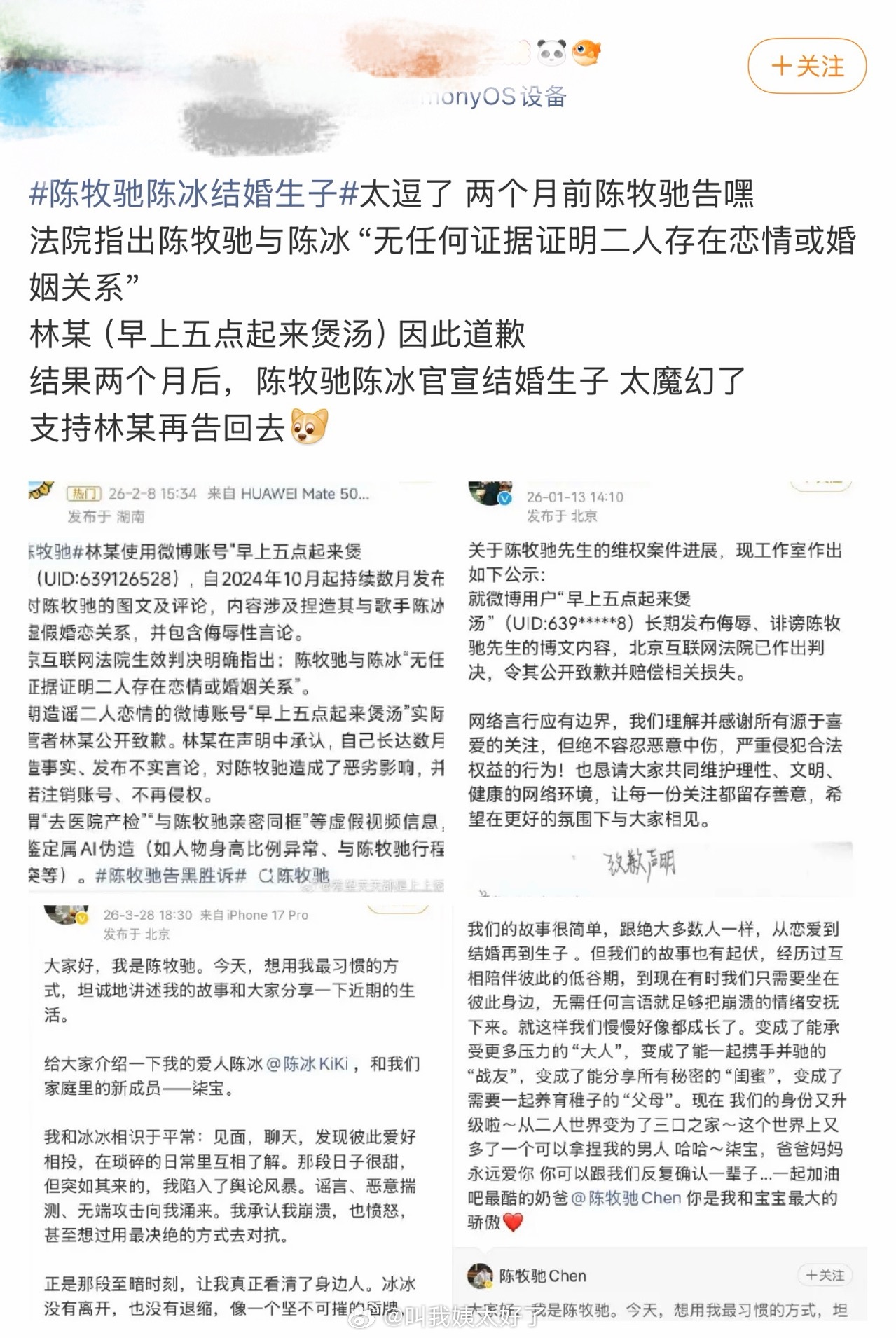 陈牧驰陈冰结婚生子 青天大老爷,到底是从哪一步开始错的🥲陈牧驰明明告的就是黑厕,现在还要为黑厕平反了,怎么魔幻的看不懂了。。。传的那张p1甚至根本就不是官方的图,到底为啥就变成证据了wb我真的对你有些无力了
