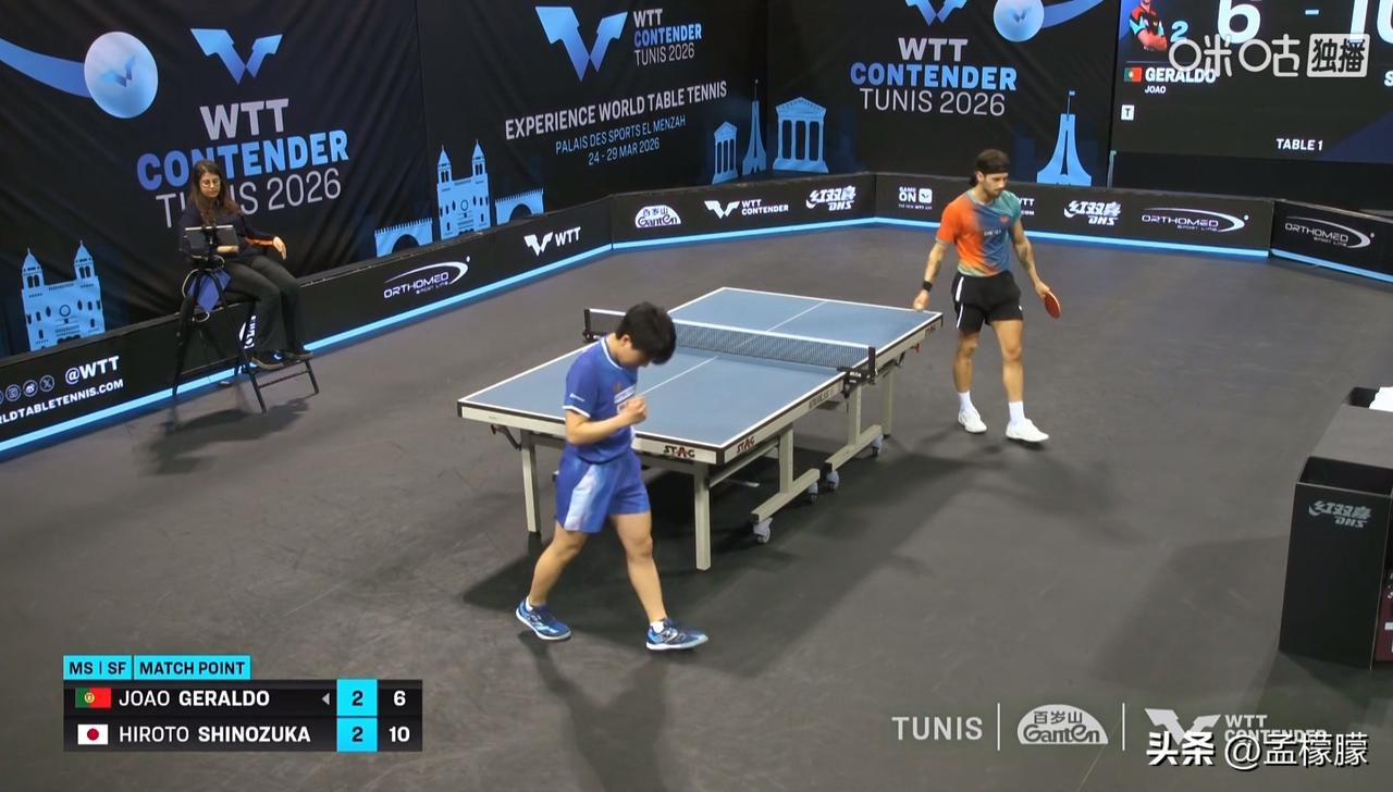 男单半决赛 篠塚大登(JPN)3-2若奥·格拉尔多(POR)【11-8,11-9,10-12,4-11,11-6】 乒乓球 WTT男单