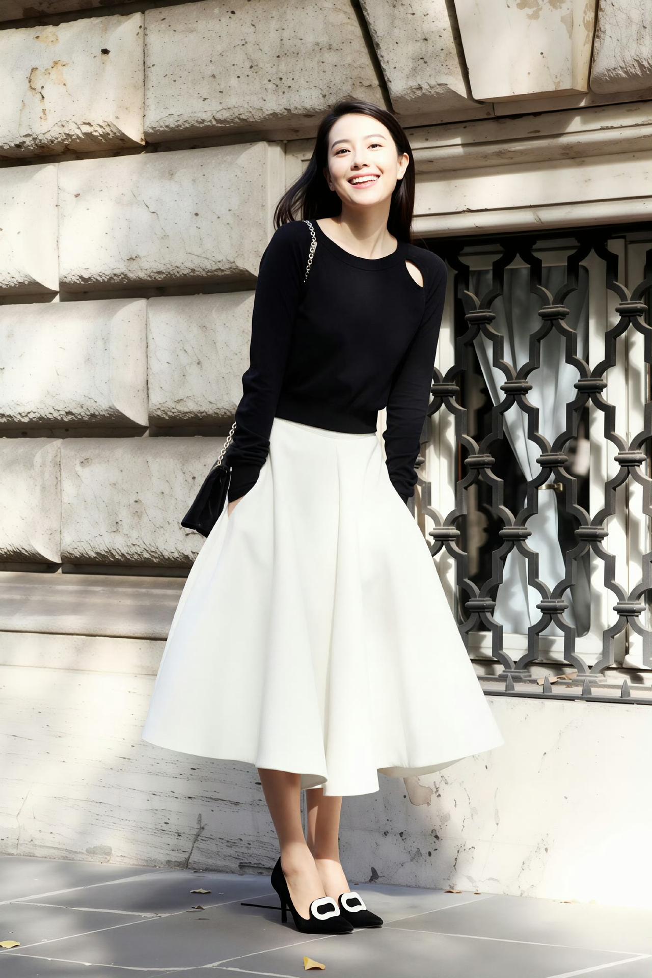 优雅美丽的高圆圆 ,简约黑白穿搭,十分动人[机智]