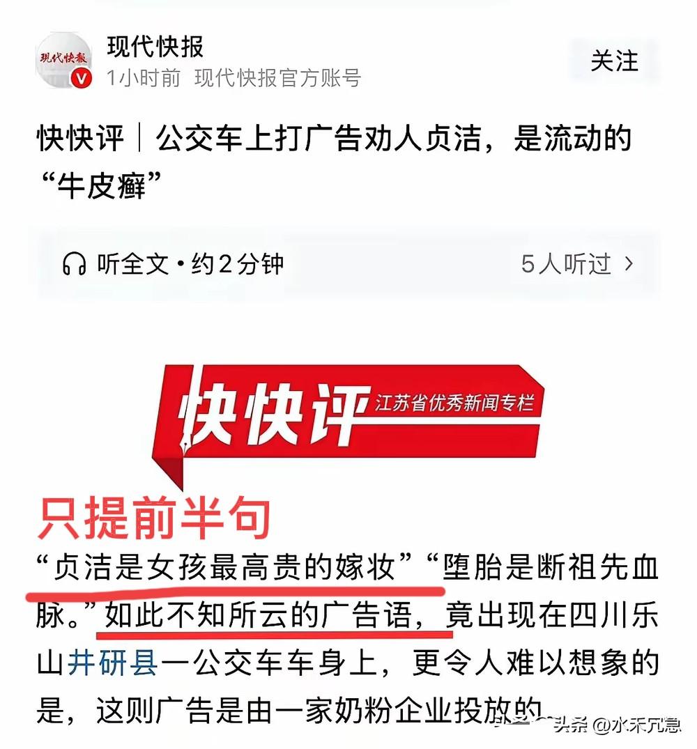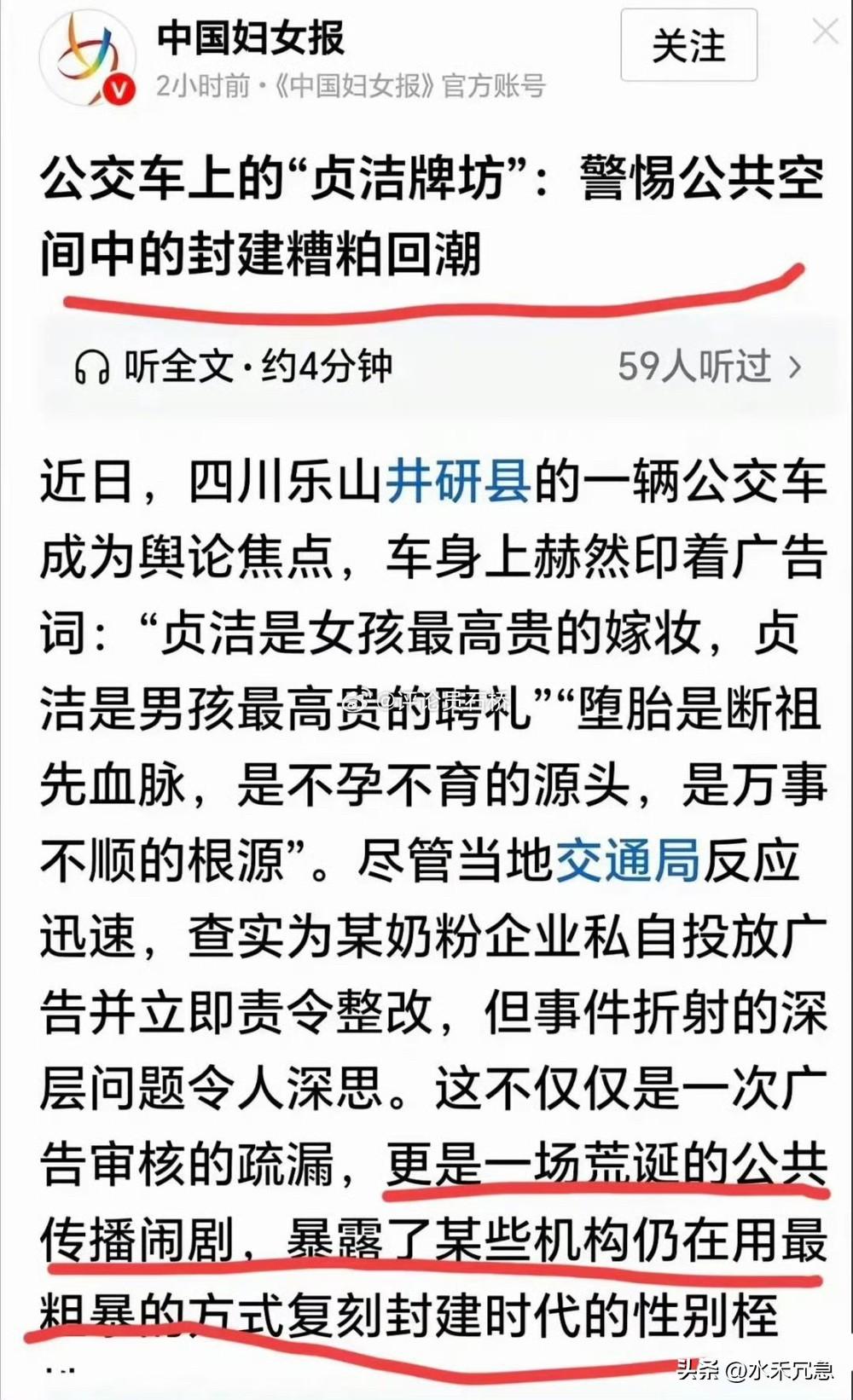 不只是北京日报!原来公开批评贞洁是封建糟粕的官方媒体居然有这么多,真是不看不知道,一看吓一跳。 有网友统计:北京日报、中国妇女报、新京报、中国青年报、中国青年网、南方日报、南方都市报、四川日报•川观新闻、红星新闻、澎湃新闻、荔枝新闻、潮新闻、闪电新闻、新黄河、半岛都市报、大河网、紫牛新闻、现代快报等…这些官方媒体都在批判贞洁是糟粕。 更让人愤怒的是,原广告不仅提到了女孩,也提到了男孩,不偏不倚,倡导男女都要洁身自好,这种宣传明明是站得住脚的,但主流媒体故意只报道写女孩那一句,这是什么用心?路人皆知。 媒体人攻击的东西,评论区的群众们却是一片支持之声。能出现这种现象,说明某些媒体人已经不懂得羞耻,完全丧失了道德感,完全脱离群众脱离实际,都不知道已经堕落到什么程度了。