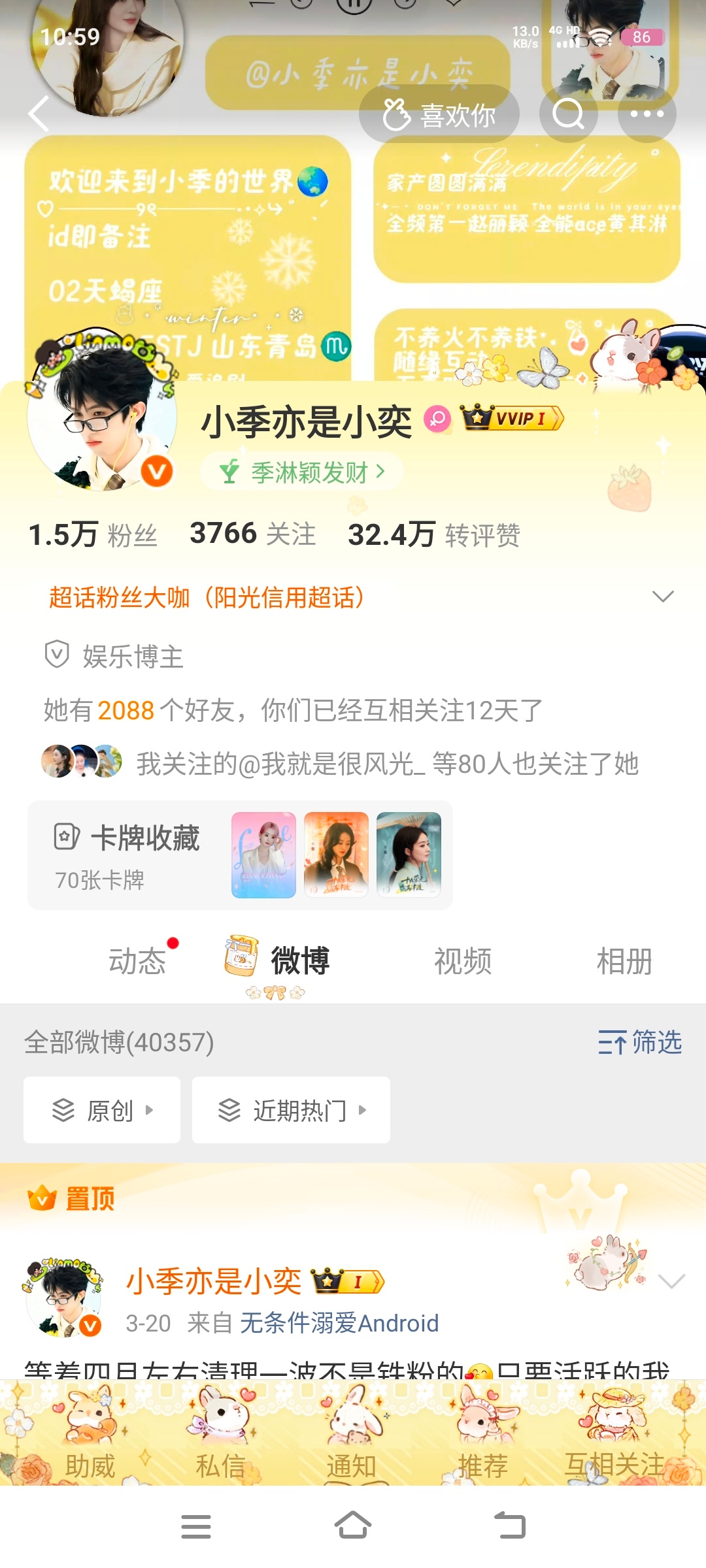 我跟小季才互关12天我就是她的钻粉了 我好牛哈哈哈哈哈哈哈哈哈哈哈哈哈哈