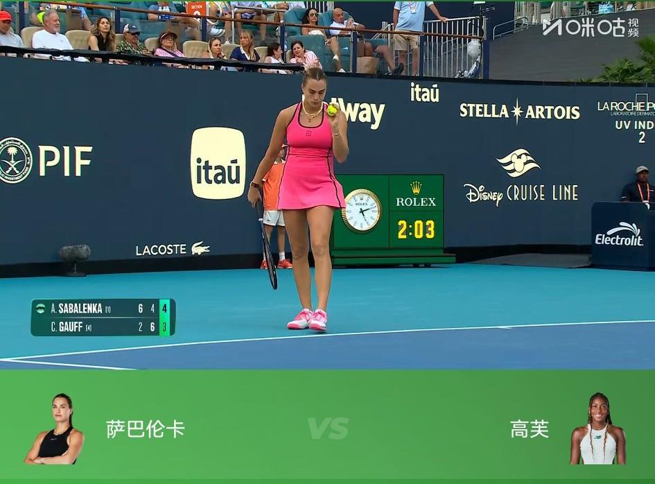 萨巴伦卡vs高芙的这场迈阿密公开赛女单决赛,到底是萨巴成就阳光双赛背靠背夺冠的伟业?还是高芙将自己对萨巴伦卡决赛连胜的记录提高到3次,将自己的决赛连胜记录扩大到10次,真的非常期待。 现在决胜盘萨巴手握一个破发球局的优势,比分是4:3。现在就看萨巴伦卡最后发球会不会掉线了,如果掉线,就很有可能被高芙逆转,因为高芙这位球员每到大赛的决赛就特别兴奋和专注,目前还没有球员能在决赛中赢过她? 大家看好高芙逆转吗?