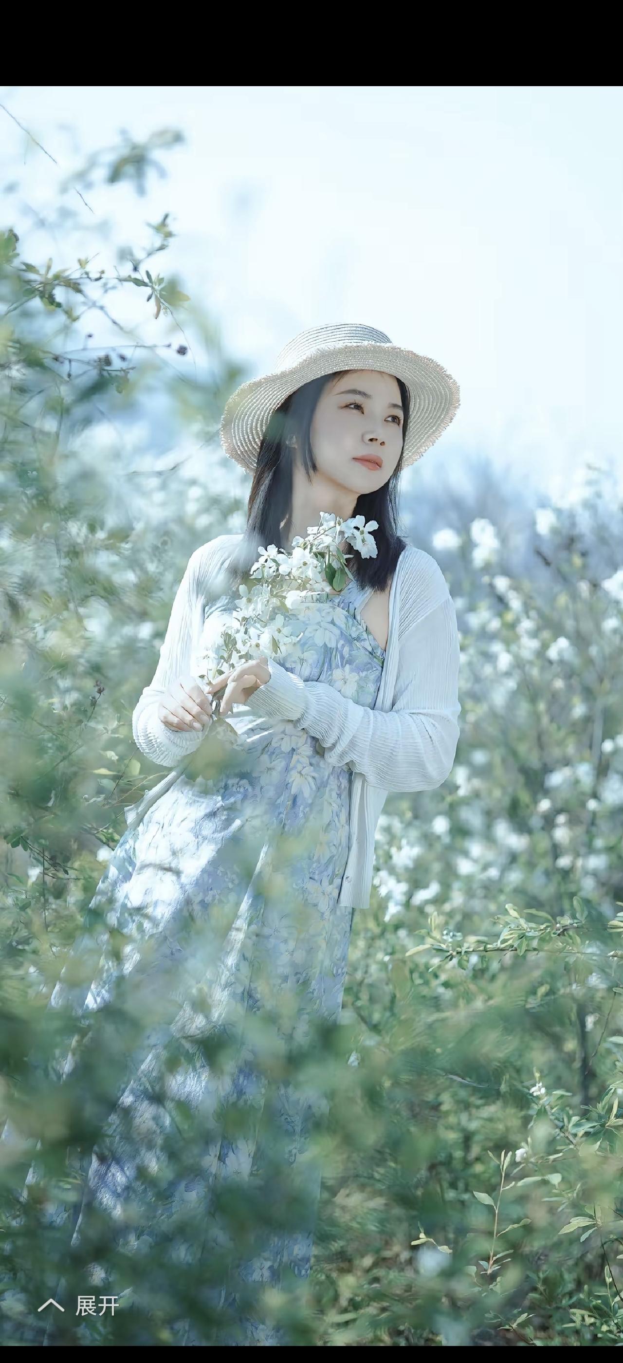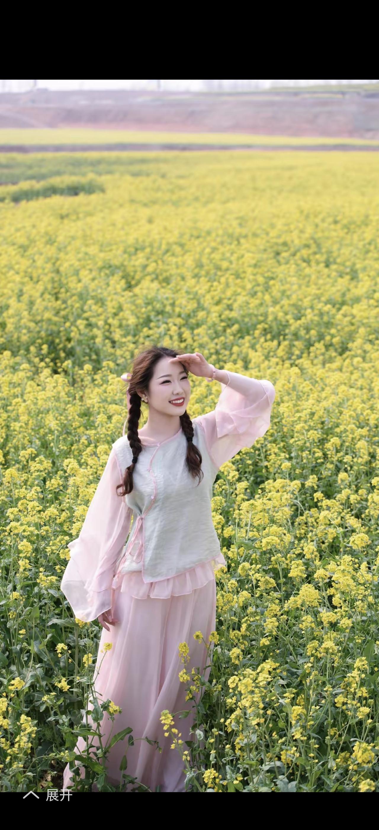 春日漫步,花海中的少女与湖畔的宁静