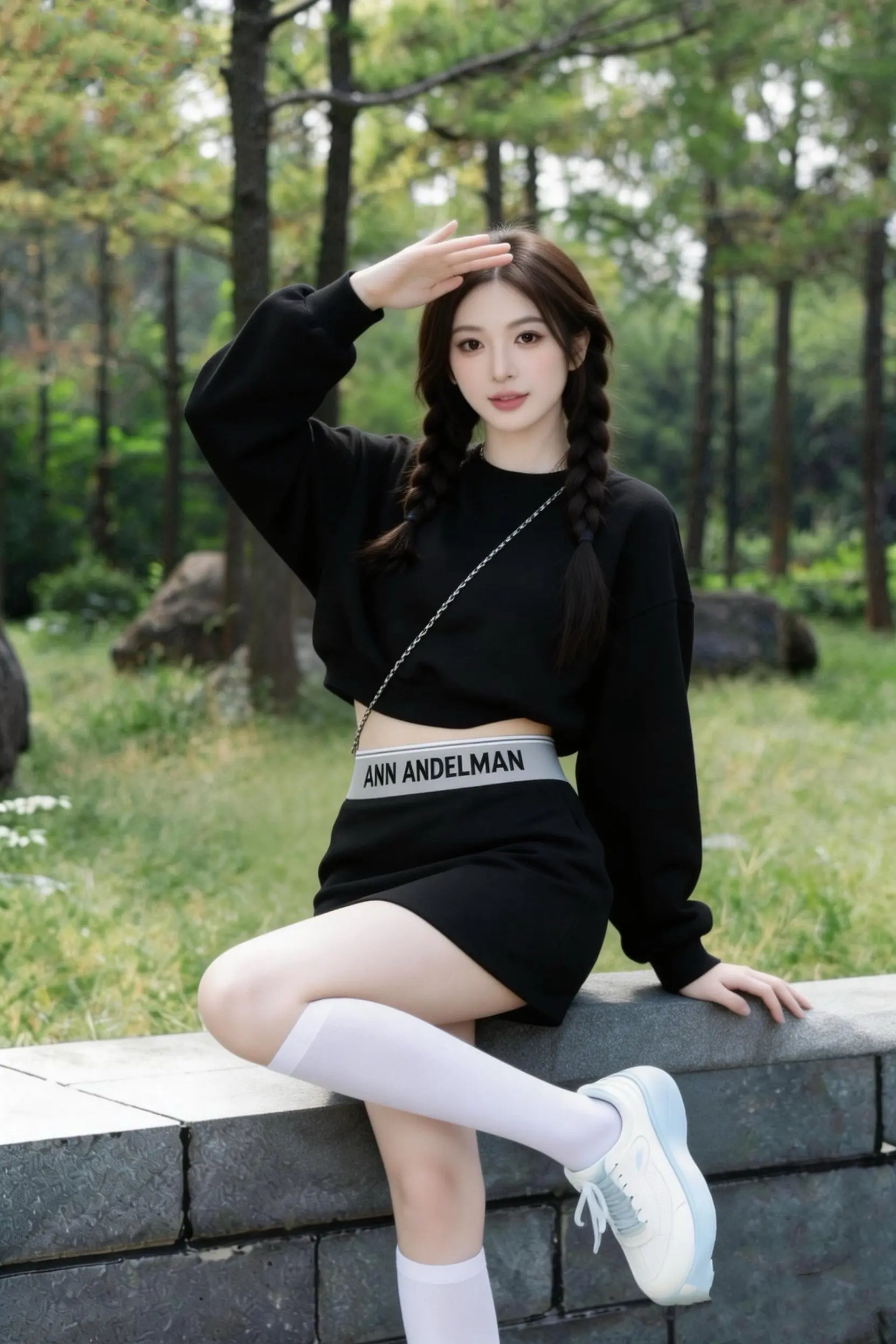 运动风也能这么甜!运动风穿搭 小个子穿搭 显高显瘦穿搭 懒人穿搭 韩系学妹穿搭 这套运动套装也太显腿长了!黑/灰两色任选,甜酷少女感拉满