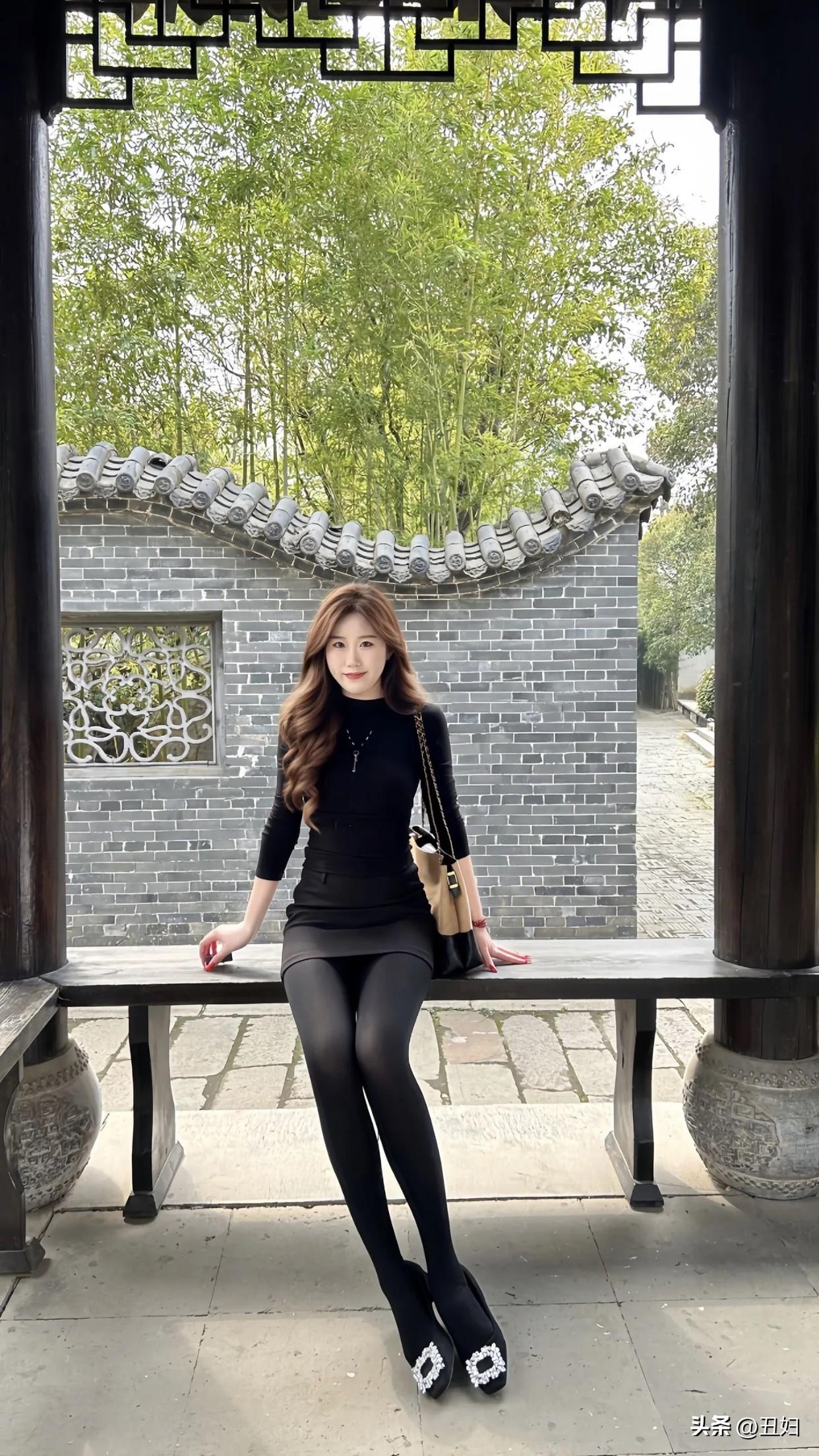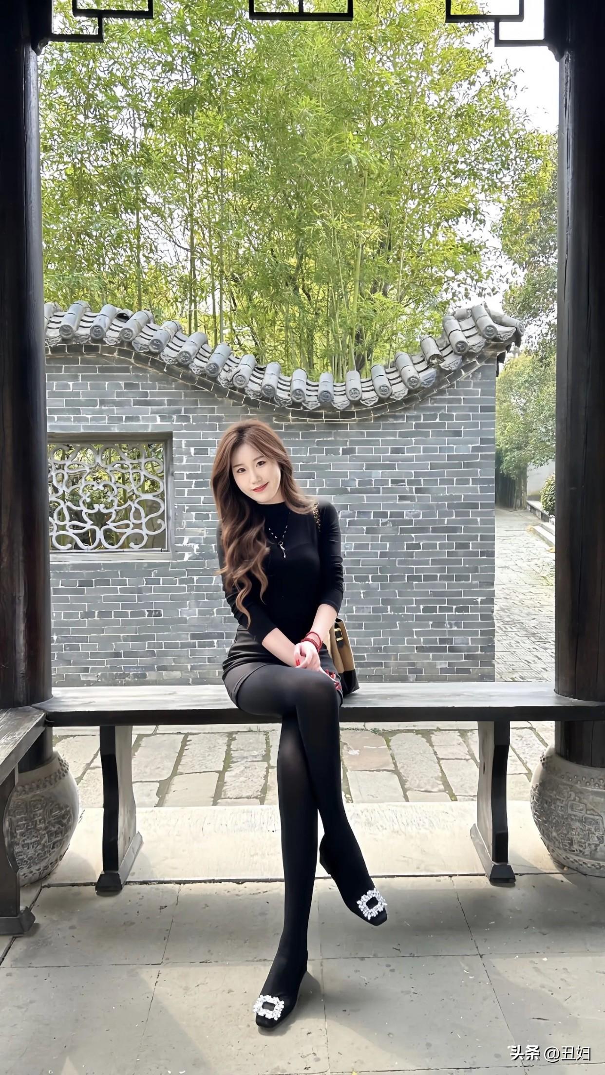 晒一张外出游玩照竹影婆娑,美人倚栏。