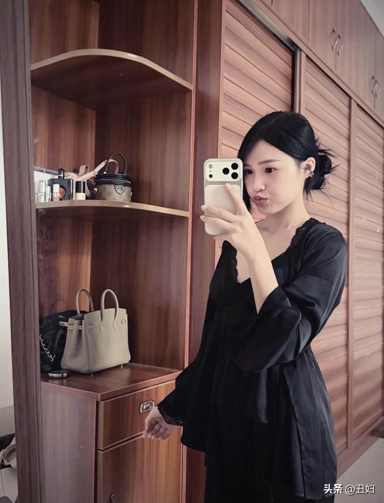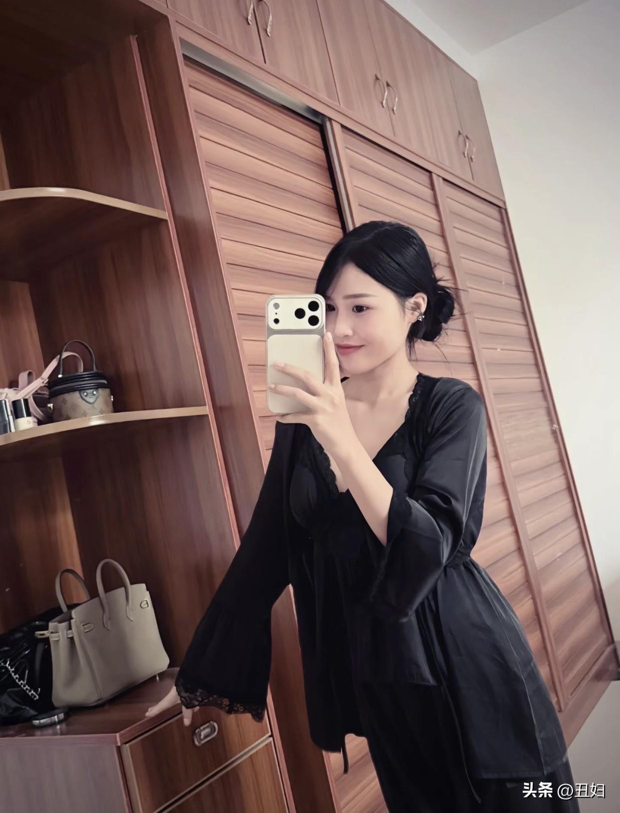 甜美小仙女的穿搭优雅黑裙穿搭,镜中自拍的时尚瞬间
