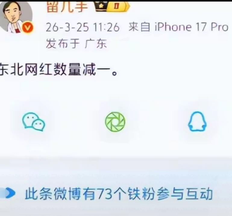 网红留几手就发表了不好的言论,直接暗讽张雪峰,当毒舌网红触碰了公众底线 张雪峰年仅41岁悄然离世,令人扼腕惋惜,遗产一半留家人一半助学,格局不是一般大。网红留几手在微博上发了短短七个字,东北网红数量减一。试想一下,如果张老师健在,这货敢跟张老师交锋吗?结果一定是被虐得体无完皮。亦或他连在网上喷一句的勇气都没有,永远趴着 相由心生,这种人能成为千万级别网红是社会的悲哀,需要人们深刻反思!!!人言可畏,对落难之人,或者是故去的人你不去帮助,不去遵重,最其码也不要踩踏和嘲讽,这是做人的一个遵则,好自为之吧。 事实证明戴眼镜的不见得都是文人墨客!不见得都是心存善念之人!不见得都是好东西!反而有些说话直率的人不见得都是恶语中伤!