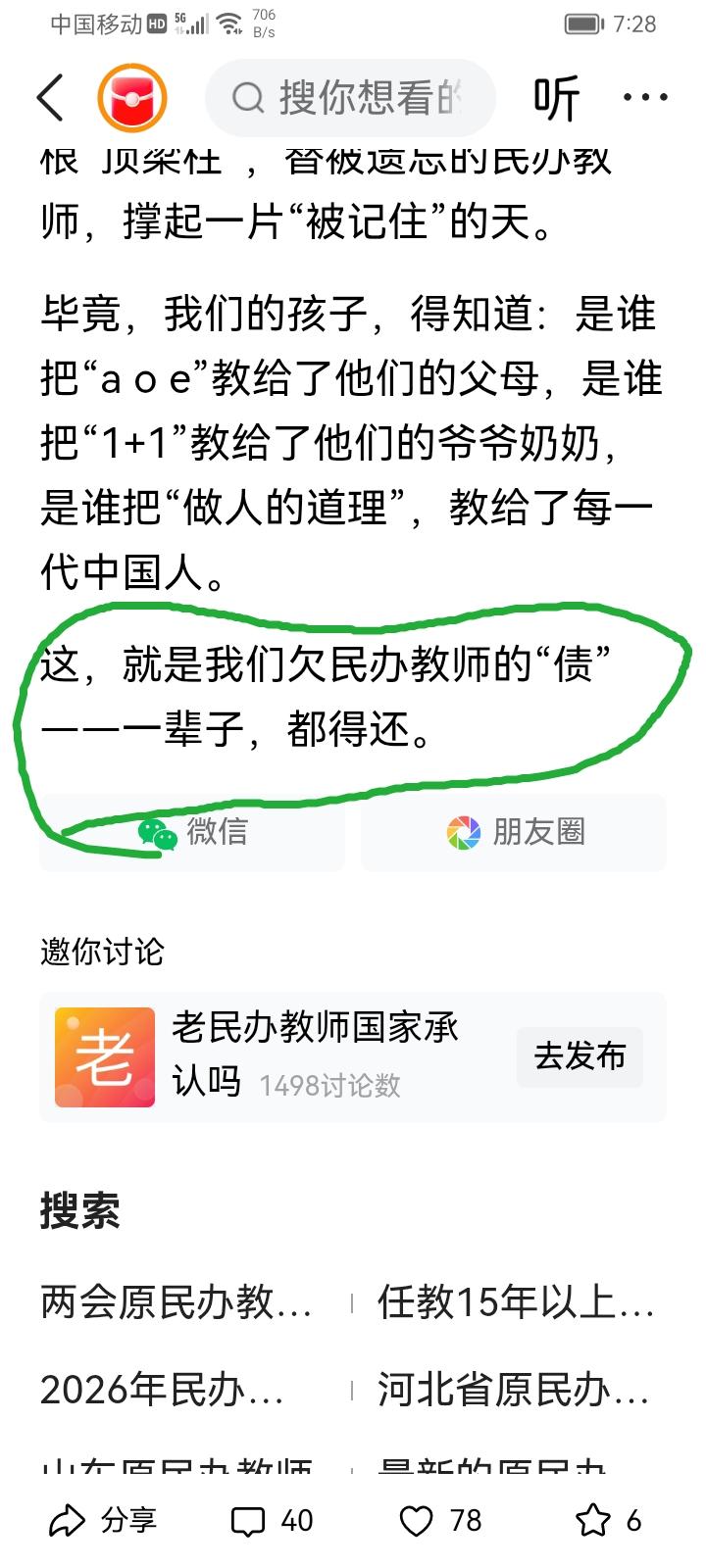 俗话说得好,“杀人偿命,欠债还钱。”这是天经地义的事,你欠民办教师的债是你一辈子去还,你如果还不清可本着“父债子还”,你为什么要用“我们”一词来绑架全国人民一辈子去还?!你以为全国人民都欠老民代教师的账了?! 你这混账之“师”!
